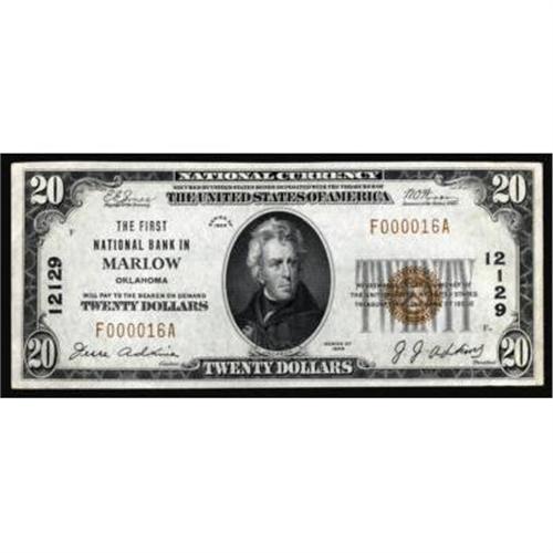 Marlow, OK. $20 1929 Ty. 1. The FNB. Charter #12129. About Uncirculated.