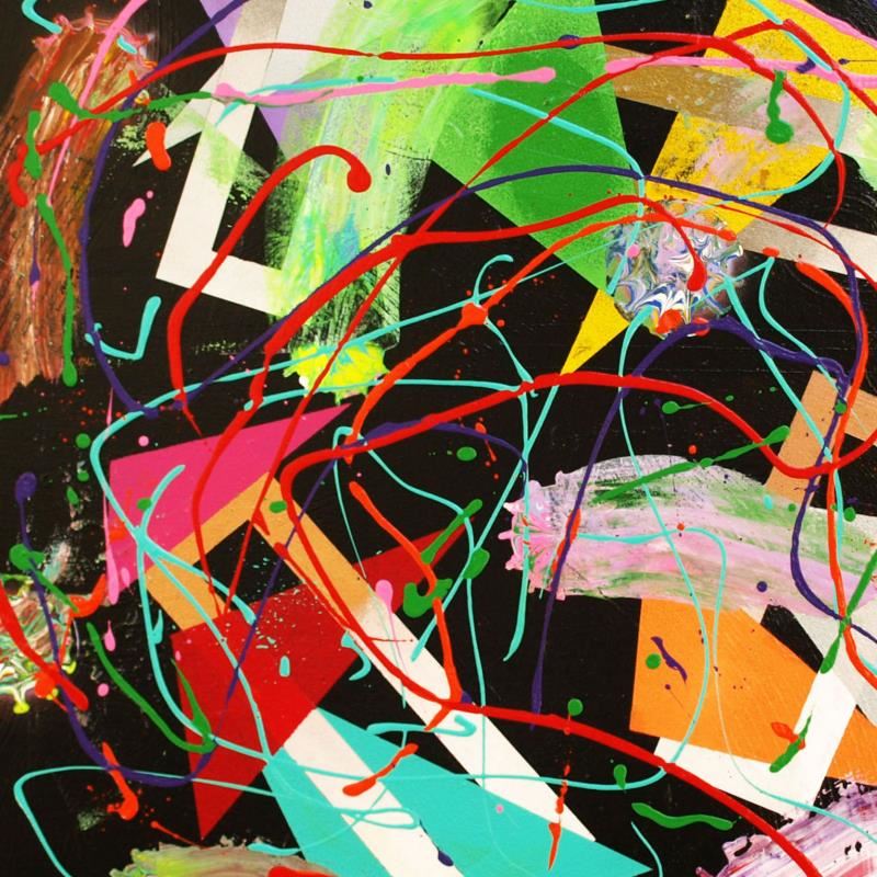 "Comets" is a hand signed original acrylic painting on canvas by George Marlowe. This piece comes gallery wrapped and includes a letter of Authenticity. Measures approximately 24" x 24".