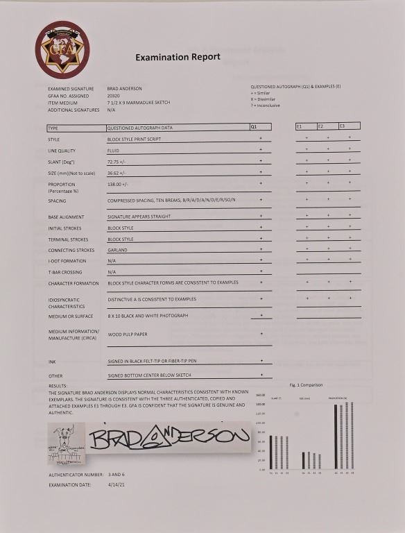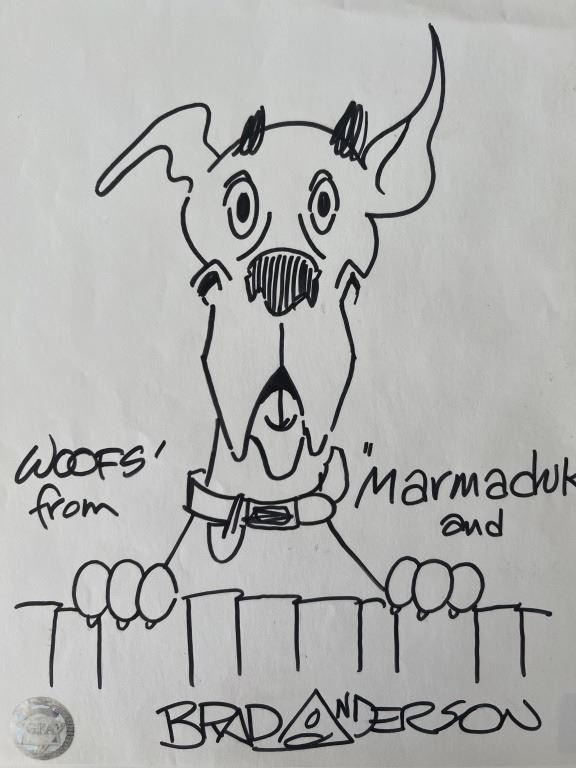 Marmaduke Brad Anderson hand drawn signed sketch. GFA authenticated. 7x9 inches. PSJ92