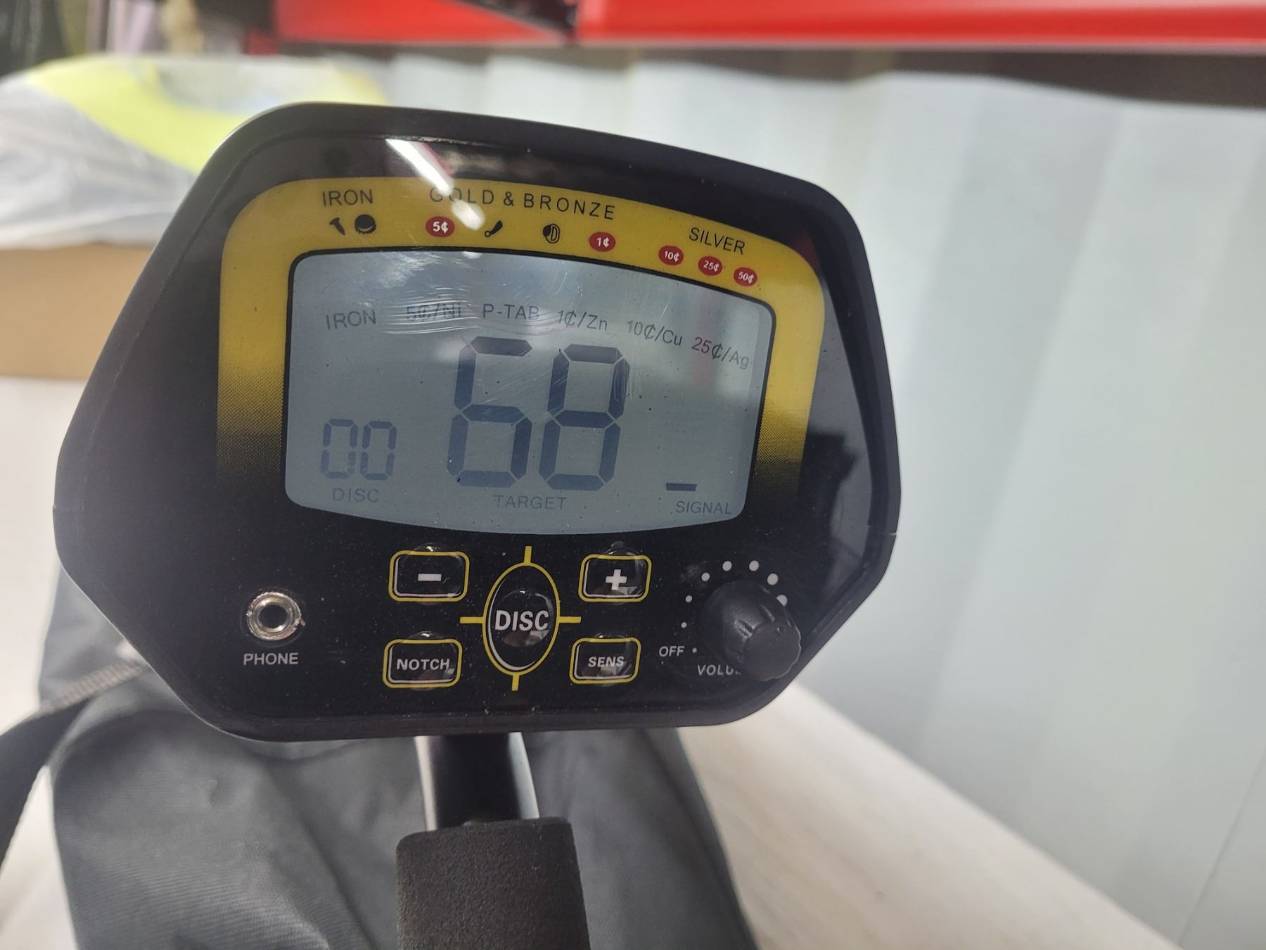 Metal detector with fabric bag. Tested pickup at 10 am