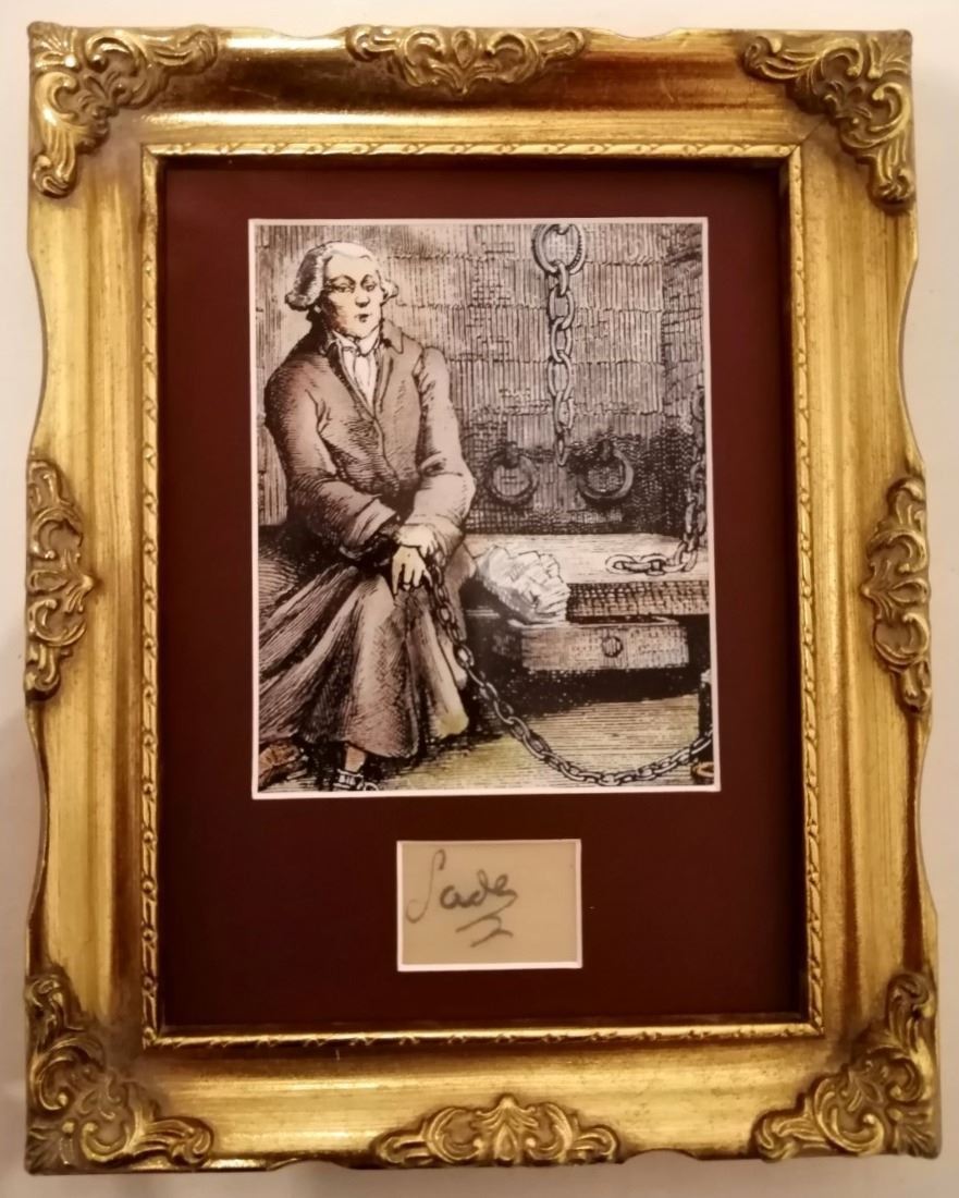 Marquis De Sade signature. Mounted, framed. Supplied with coa.