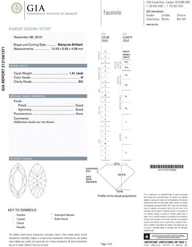Marquise Diamond 1.41carat H:SI2:GIA:Dim.:10.40*5.86*4.08