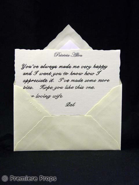 Pat's (Patricia Clarkson) hero letter to Harry in off white envelope written on her own stationery paper (approx. 6.25" x 4")