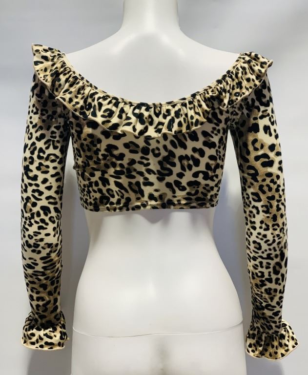 Original crop top with cheetah design worn by "Kelly Bundy", played by Christina Applegate in the television sitcom 'Married with Children' (1987 - 1997).