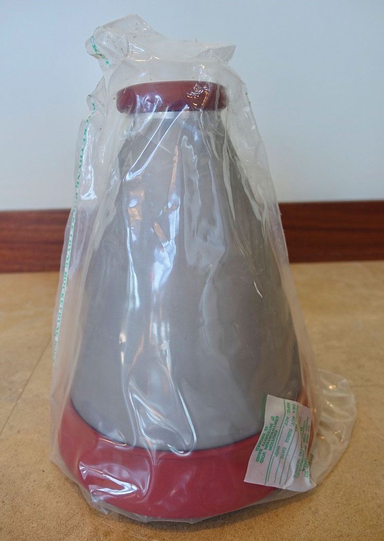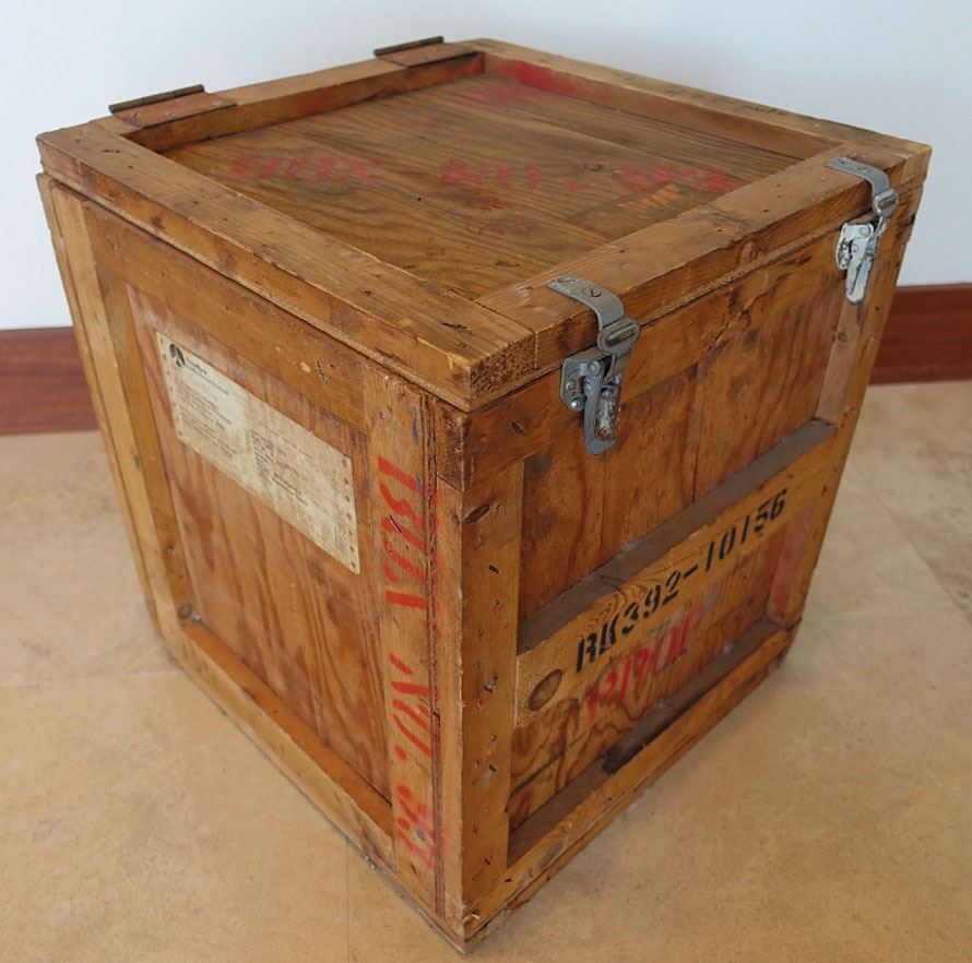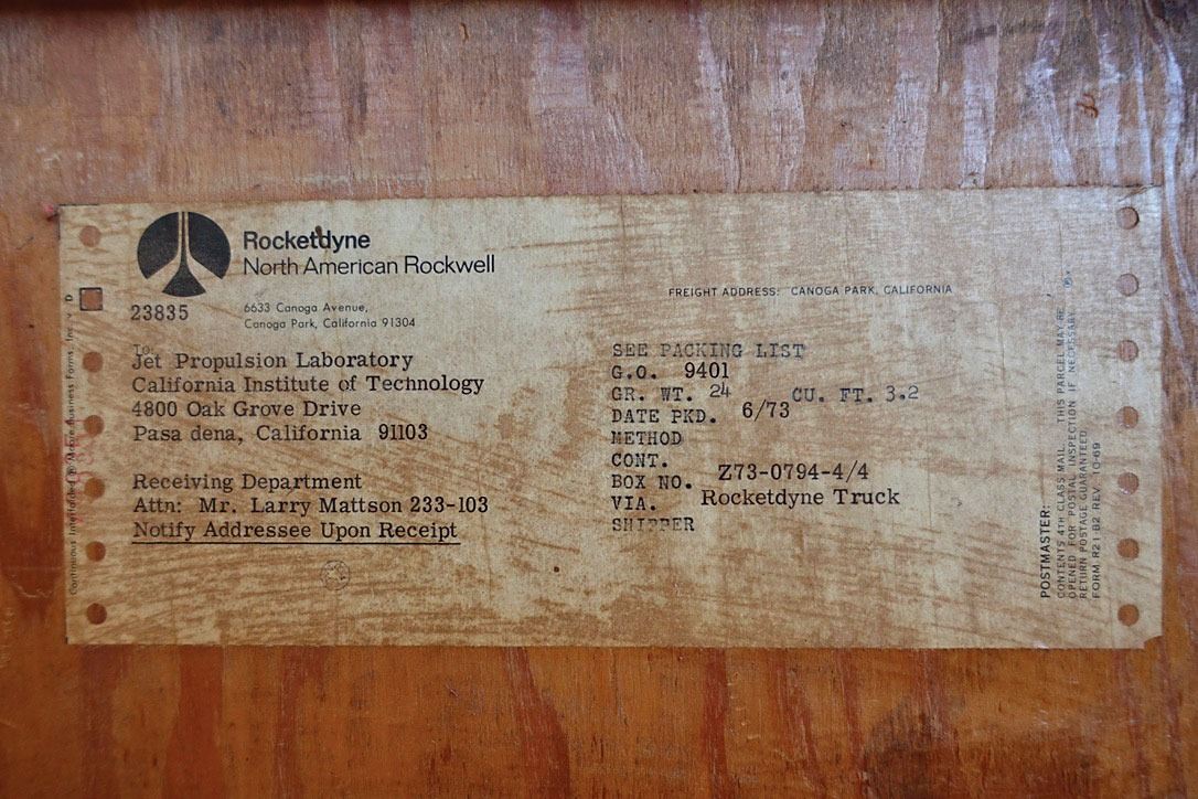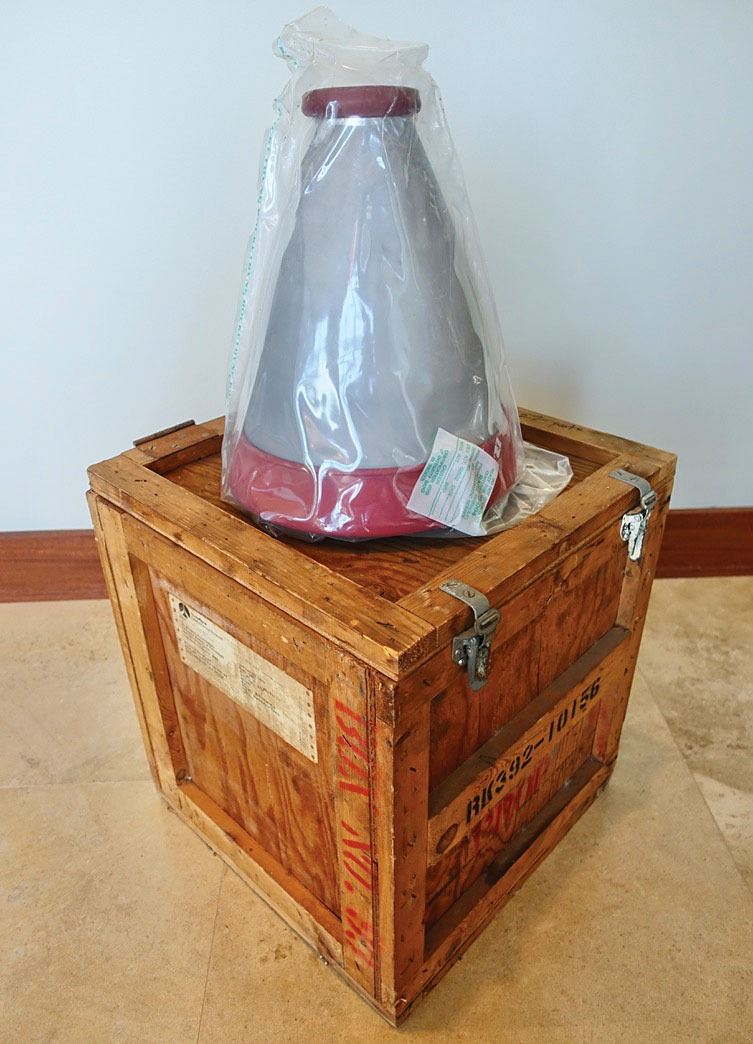 Engine bell nozzle extension for a Rocketdyne RS-2101 Liquid Rocket Engine designed for application on the Mars Viking Orbiter, sealed in its original cleaning bag. Includes its protective red rubber caps and original Rocketdyne shipping crate.