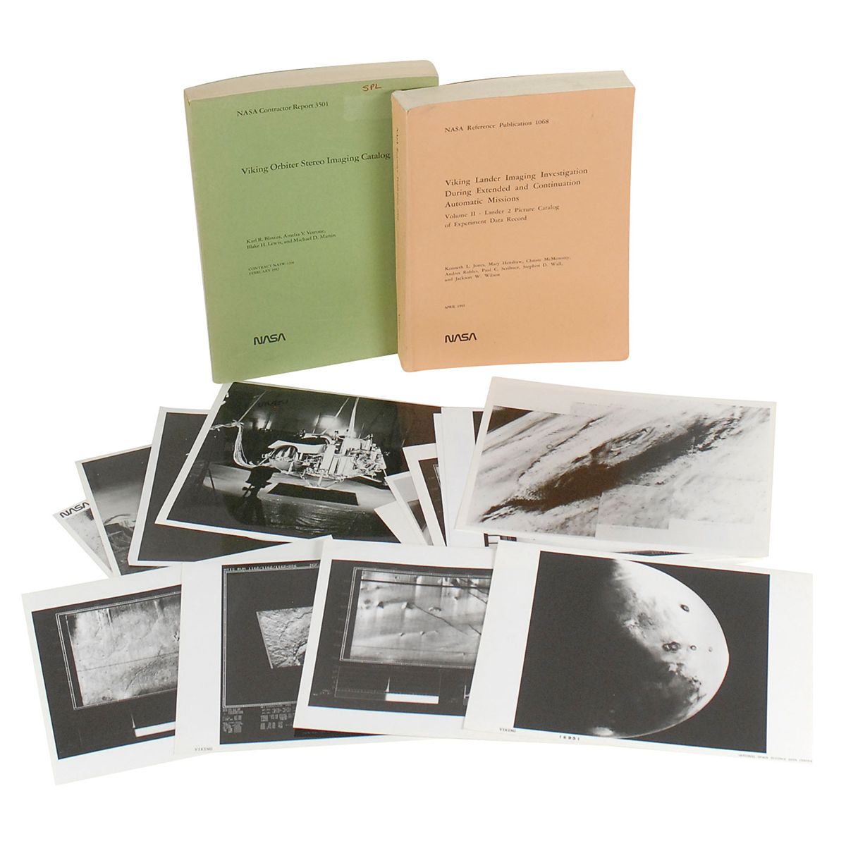 Two NASA publications: Viking Orbiter Stereo Imaging Catalog, dated February 1982; and Viking Lander Imaging Investigation During Extended and Continuation Automatic Missions, Volume II, dated April 1981; and 14 photos from the Viking project and mission, including four original NASA photos, with the remainder being second generation. In overall fine condition.