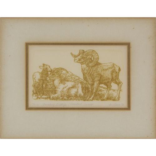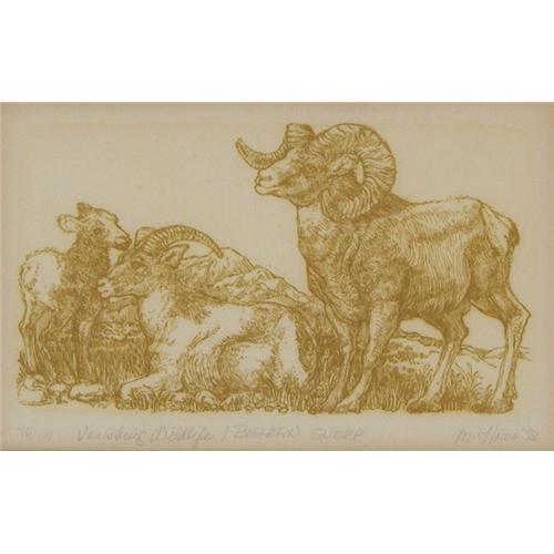 Marsha Howe (b.1943) Engraving, "Vanishing Wildlife, Bighorn Sheep", #78/100, 1973, image size 3 5/8" x 6 1/2", pencil signed