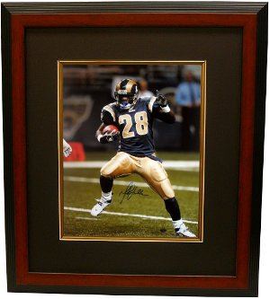 Marshall Faulk was traded to the St. Louis Rams in 1998. Marshall is one of the 3 players (Marcus Allen & Tiki Barber) to reach at least 10,000 rushing yards and 5,000 receiving yards in his career and the only one to have 12,000 yards rushing, 6,000 yards receiving. His seven two-point conversions are an NFL record. His 5 games of 250+ yards from scrimmage and 14 games of 200+ yards from scrimmage are also NFL records. Marshall Faulk is the only player to have 70+ rushing touchdowns and 30+ receiving touchdowns. Marshall Faulk has hand autographed this St. Louis Rams 16x20 Photo. Custom Black Mat and Wood Color Framed as shown. Faulk Hologram and Certificate of Authenticity from Athlon Sports.