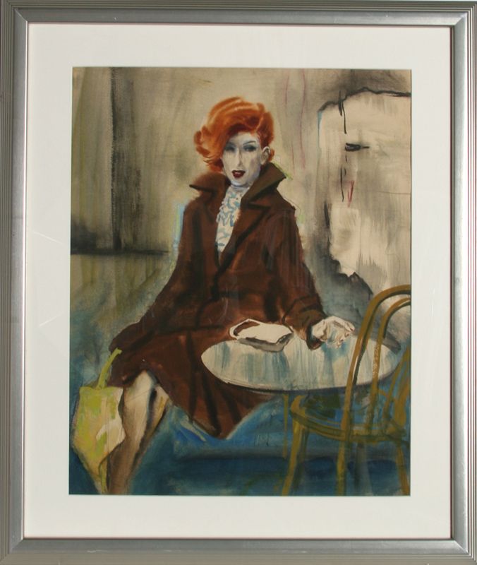 Marshall Goodman, Red-Haired Woman in Cafe, Watercolor