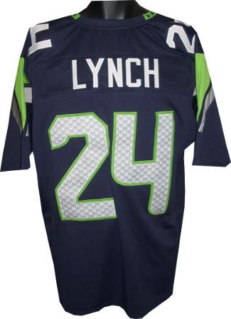 Lynch was a huge factor for the Seahawks in 2013, rushing for 1257 yards and 12 TDs, and recording three 100-yard games. He was voted to the Pro Bowl for the third straight year, but had to decline the appearance due to his participation in Super Bowl XLVIII. He would end up rushing for 39 yards during that game, including a touchdown score, resulting in the team's first Super Bowl victory.This is a Marshawn Lynch Seattle Seahawks unsigned Navy unlicensed custom-prostyle jersey with twill stitched nameplate and numbers. perfect for autograph or to wear! Size XL