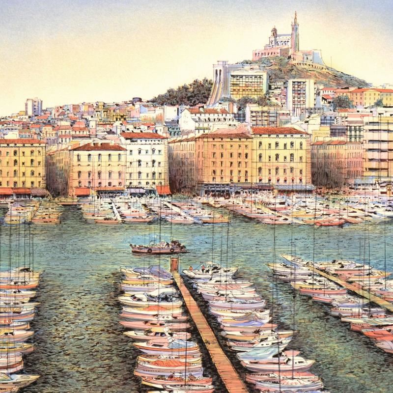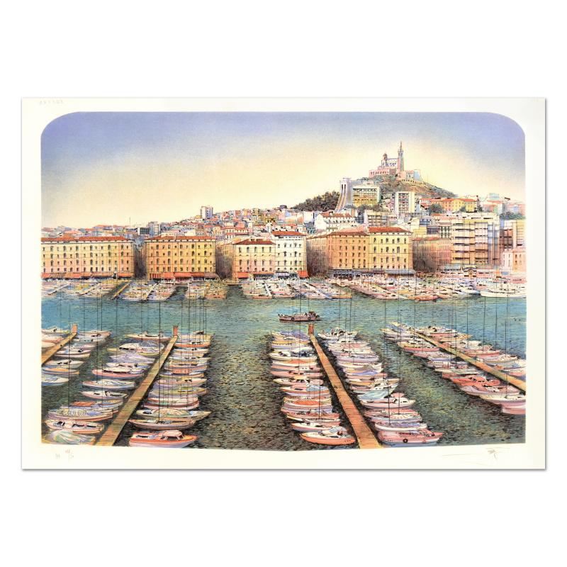 "Marsseille" is a limited edition lithograph on paper by Rolf Rafflewski, numbered and hand signed by the artist! Measures approx. 29.5" x 21" (border). 27" x 20" (image).