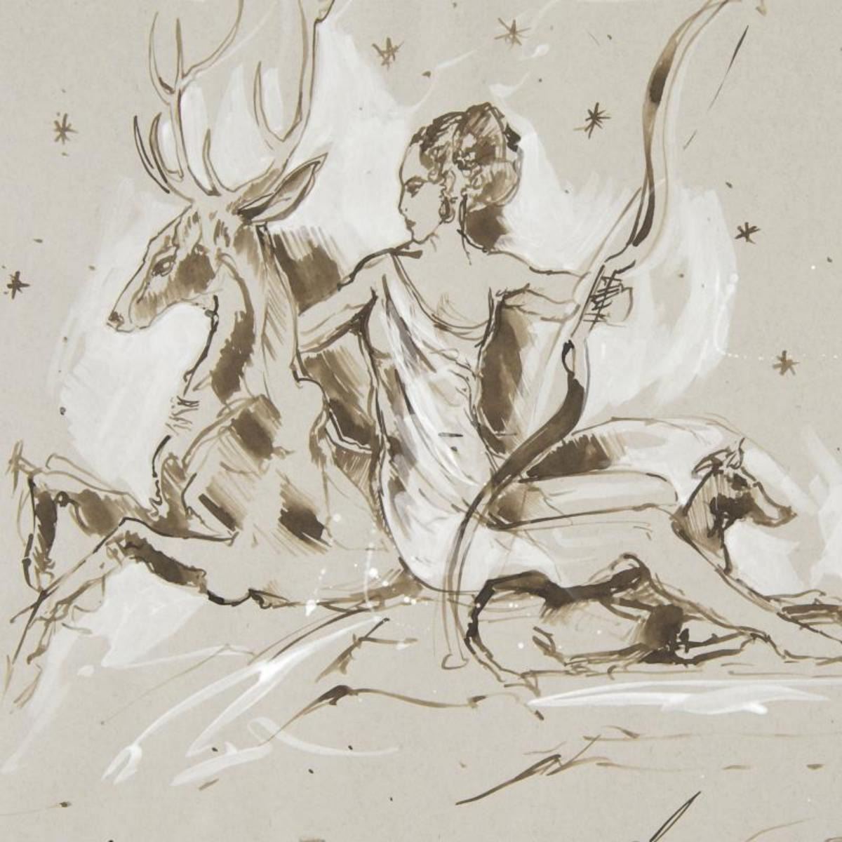 "Diana" is an original ink sketch on paper, hand signed and thumb printed by Marta Wiley. Includes Certificate of Authenticity. Measures approx. 24" x 18" (image). Reference #: 228490