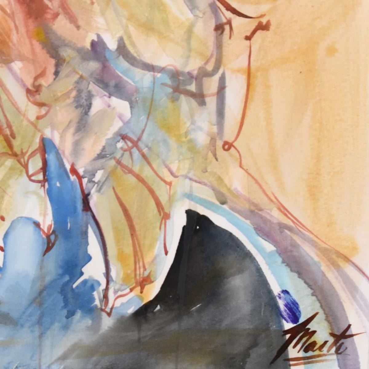 This is an original mixed media painting on paper, hand signed and thumb printed by Marta Wiley. This piece comes custom framed. Includes Letter of Authenticity. Measures approx. 25" x 31" (frame); 17" x 23" (image). Due to the medium, the paper may be slightly wavy, particularly around the edges. Reference #: 250728