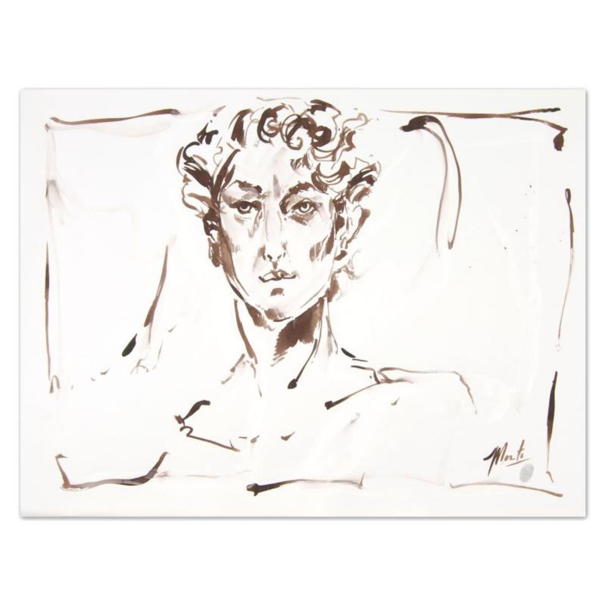 Marta Wiley, "Greek Study" Original Ink Sketch, Hand Signed and Thumb Printed with Certificate of Au