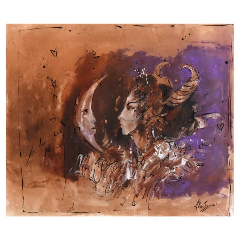 This is an original mixed media painting on canvas by Marta Wiley, hand signed and thumbprinted by the artist. Includes Letter of Authenticity. Measures approx. 36" x 32" (image).
