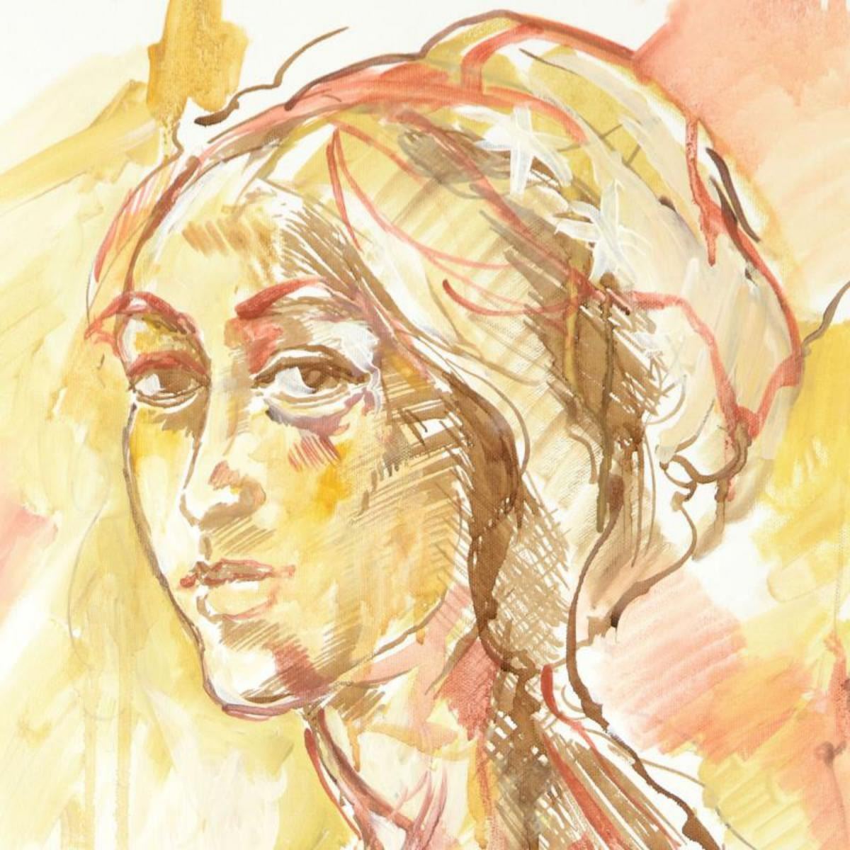 This is an original mixed media sketch and acrylic painting on canvas by Marta Wiley, thumb printed and hand signed by the artist. Includes Certificate of Authenticity. Measures approx. 16 x 22 (image). Reference #: 234880