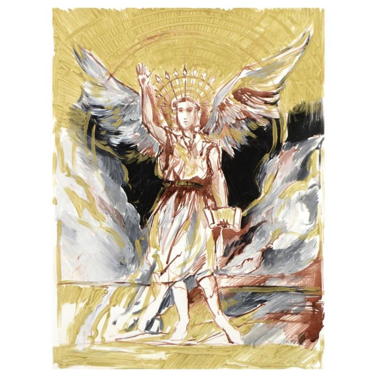 This is an original mixed media sketch and acrylic painting on canvas by Marta Wiley, thumb printed and hand signed by the artist. Includes Certificate of Authenticity. Measures approx. 16 x 22" (image). Reference #: 234931