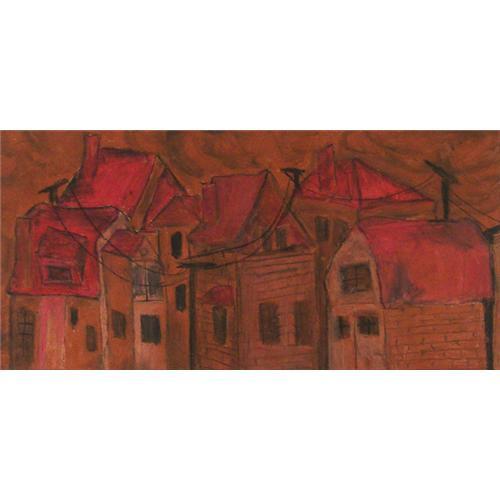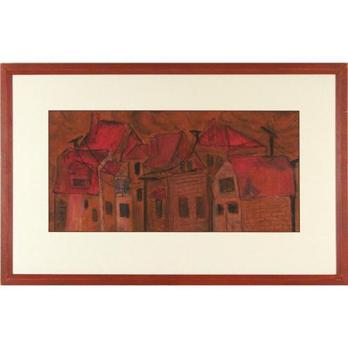 Martha Epp (1907-1995) Gouache, "The Village", sight size 10 3/4" x 22 1/8", signed lower left