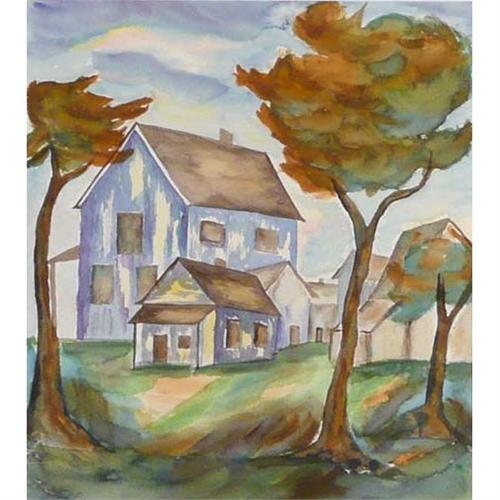 8156 Martha Epp (1907-1995) Watercolor "Town" Signed lower left 16 1/2" x 15"