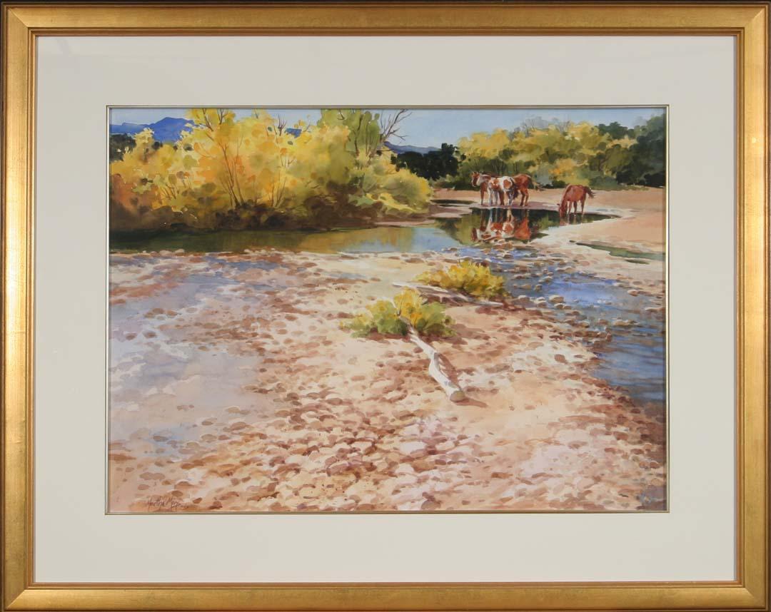 Martha Mans (20th/21st Cent). Autumn Reflections . 22" x 30" watercolor. Signed lower left with AWS. American Watercolor Society. (est $1,500-2,000). For condition reports please visit: www.auctioninsantafe.com/cr2011.pdf