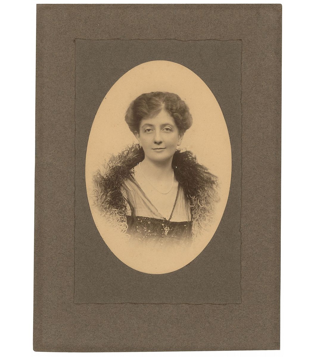 First class Titanic survivor and wife of prominent US businessman and president of the Cincinnati Bell Telephone Company, George Nelson Stone. Mrs. Stone and her maid Rose Icard were rescued by the Carpathia in lifeboat 6. Original vintage matte-finish oval portrait of Martha Stone measuring approximately 3.75 x 5.5, and showing a young Stone in black lace and a feather boa. Photo is affixed to a 4.25 x 6.75 mount, which is in turn affixed to a 6.25 x 9 mount. In fine condition. Photo originates directly from the great grandson of Martha Stone.