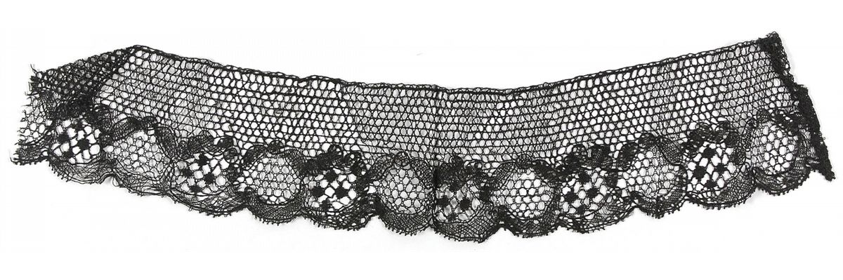 Piece of black lace belonging to Martha Washington, 14.75 x 3, possibly mourning lace. Accompanied by a color copy of the decorative cover of the box in which the lace was kept, as well a second copy, with “Three ornaments from the mantle piece at Mount Vernon,” and later labeled in ballpoint, “Martha Washington’s lace.” Provenance: the Tobias Lear family, James D. Julia Auction, February 5, 2010. Lear, Washington’s trusted friend and personal secretary from 1784 until his death, took nieces of Martha Washington for both his second and third wives. Memorabilia related to Martha is very scarce and thus quite desirable.