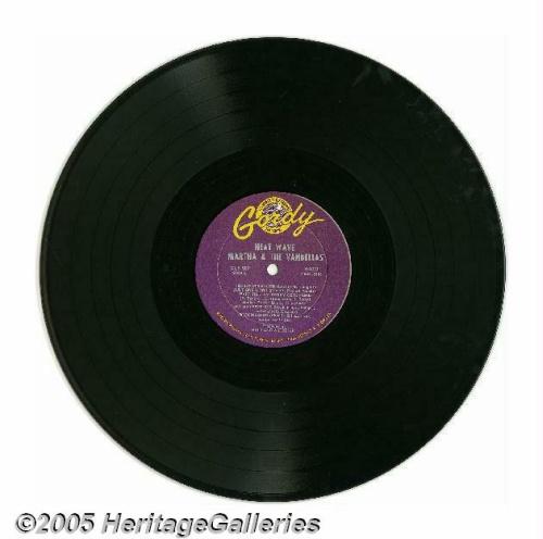 <B>Martha and the Vandellas "Heat Wave" LP Gordy 907 Mono (1963).</B></I> Second only to the Supremes among Motown's girl groups, Martha and the Vandellas had two Top 10 hits before the Supremes' breakout year in 1964, including the title cut. Very nice record, but the cover has a tape stain at the back top right corner, and across the back bottom edge. Condition: VG++ (record)/VG (cover).
