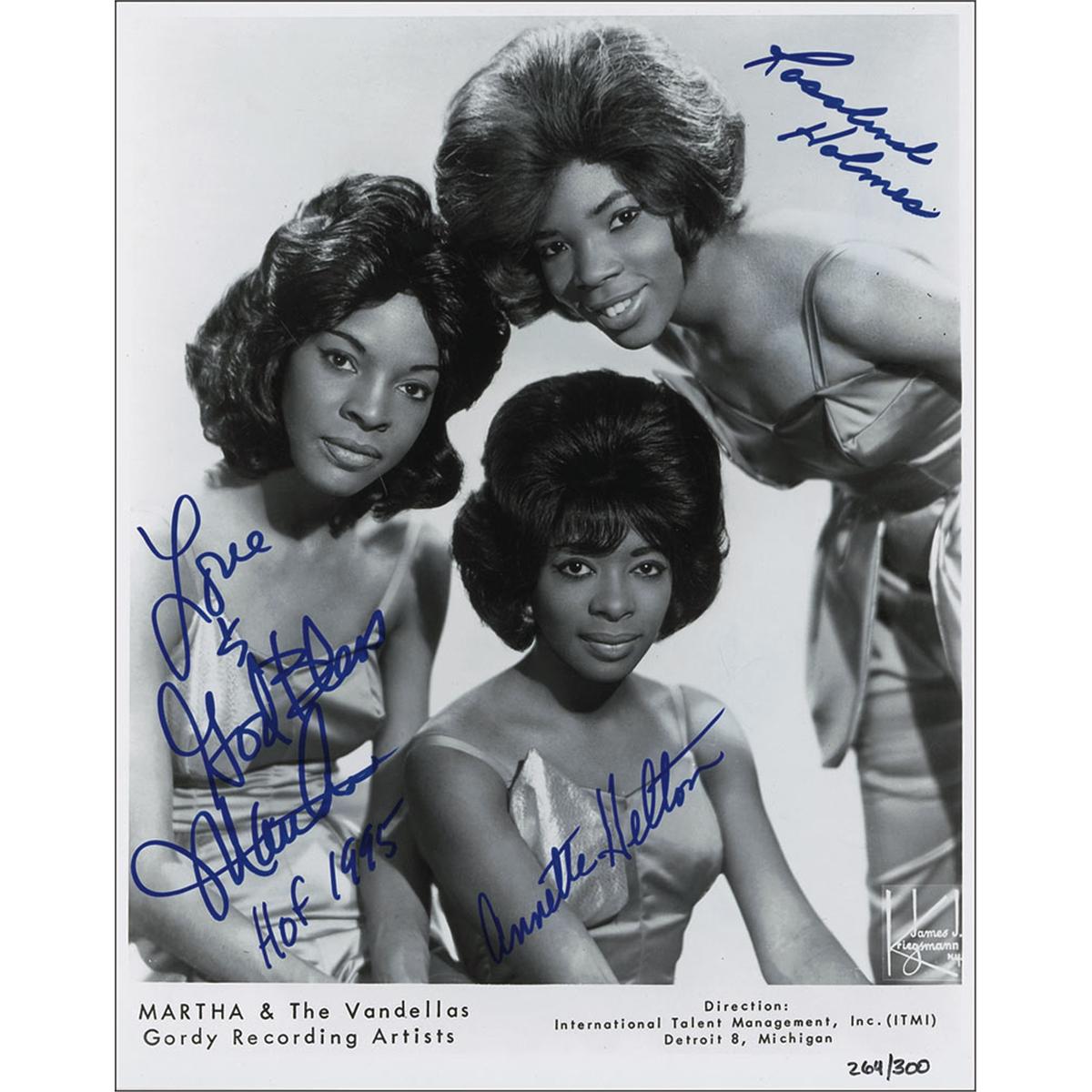 Glossy 10 x 12.5 photo, signed in blue felt tip “Love & God bless, Martha, HOF 95,” “Annette Helton,” and “Rosalind Holmes.” In fine condition, with a few trivial surface marks.
