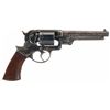 This is an example of a Civil War Model 1858 double-action revolver manufactured under government contract by the Starr Arms Co., of New York, New York between January 1862 and May 1863. The revolver has a six-shot cylinder, solid frame, and one piece oil-finished walnut grip. The barrel, frame, cylinder and trigger guard have a high polish blue finish. The loading lever and short spur hammer are casehardened. A blade front sight is mortised on the barrel and the rear sight is a shallow notch in the hammer lip. The right side of the frame is marked "STARR'S PATENT JAN.15, 1856" and the left side is marked "STARR ARM'S CO., NEW YORK". The matching serial number, "21191 is stamped on the front of the frame, hammer and on the cylinder. Single-letter ordnance sub-inspection mark "B" is stamped on most major components. Two script Ordnance inspection marks are stamped on the right side of the grip (upper and lower) and a single script inspection mark is stamped on the lower left side. Star Model 1858 revolvers were widely issued to Federal cavalry regiments during the Civil War.