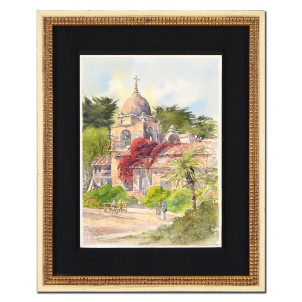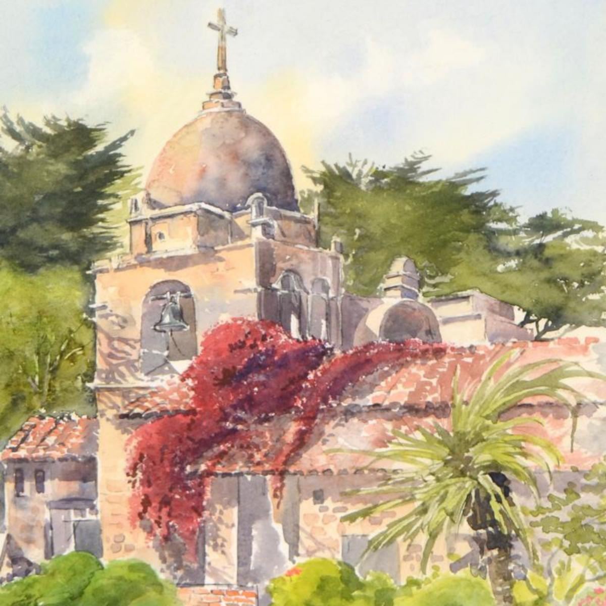 Martin Goode (1932-2002), "The Mission, Carmel, Monterey, California " Framed Original Watercolor Pa