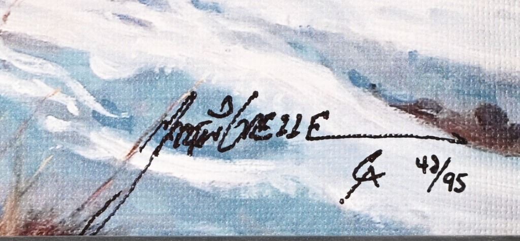Limited edition giclee canvas print 14" x 14", numbered 42/95.