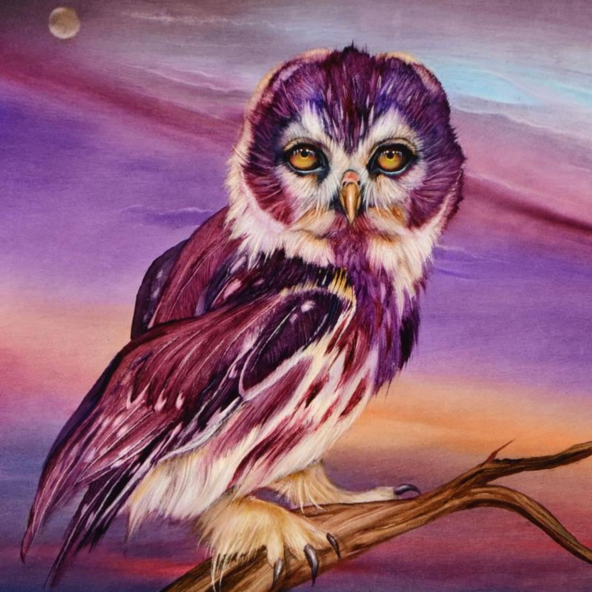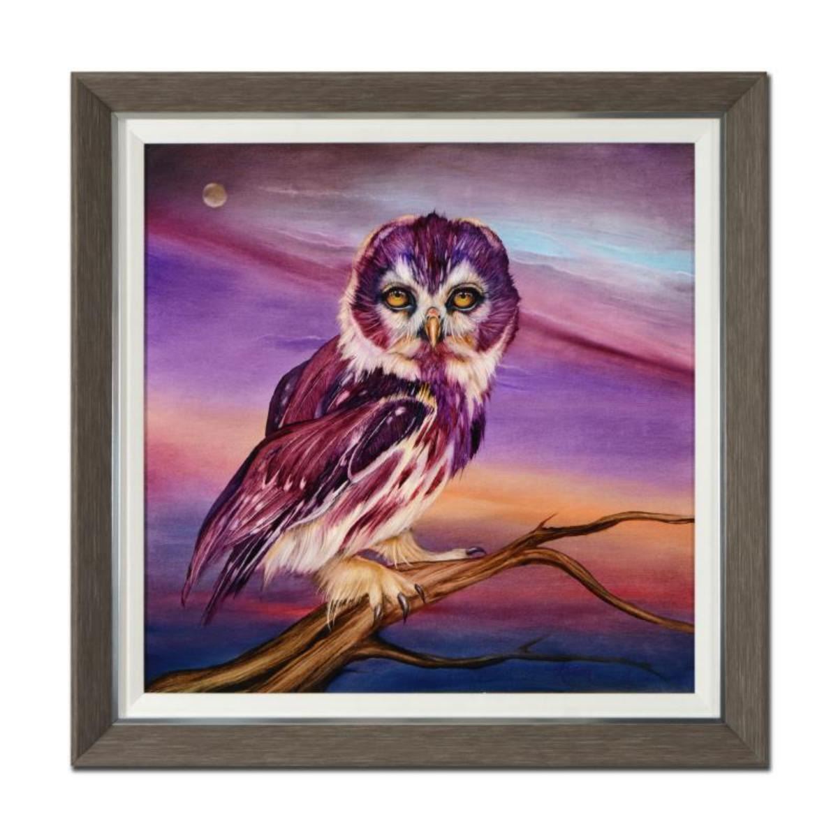 Martin Katon, "Brighter Than Life: Owl" Framed Original Oil Painting on Canvas, Hand Signed with Cer