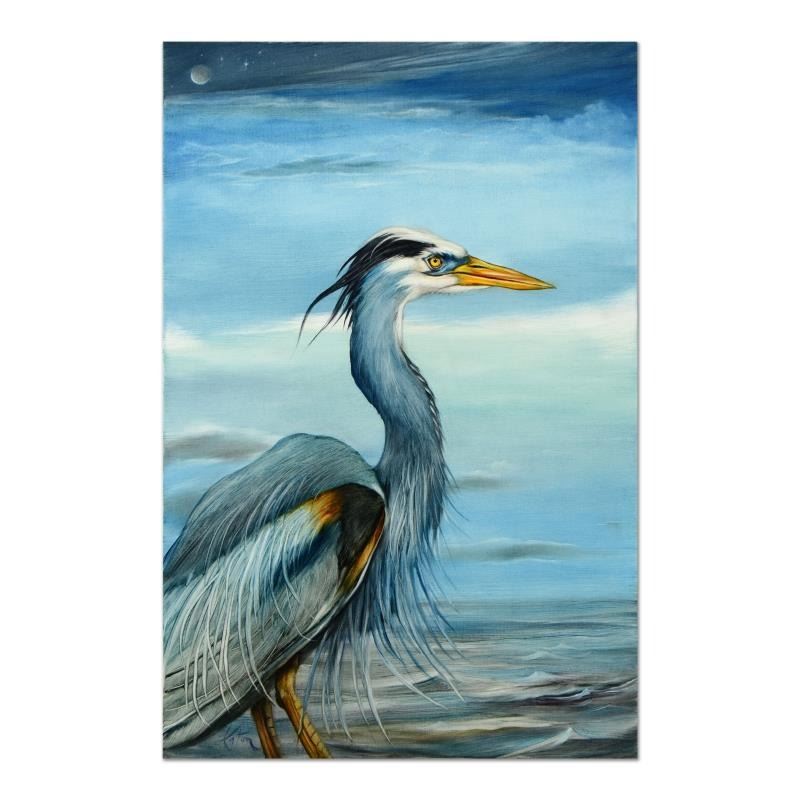 Martin Katon, "Happy Great Blue Heron" Original Oil Painting on Canvas, Hand Signed with Letter of A