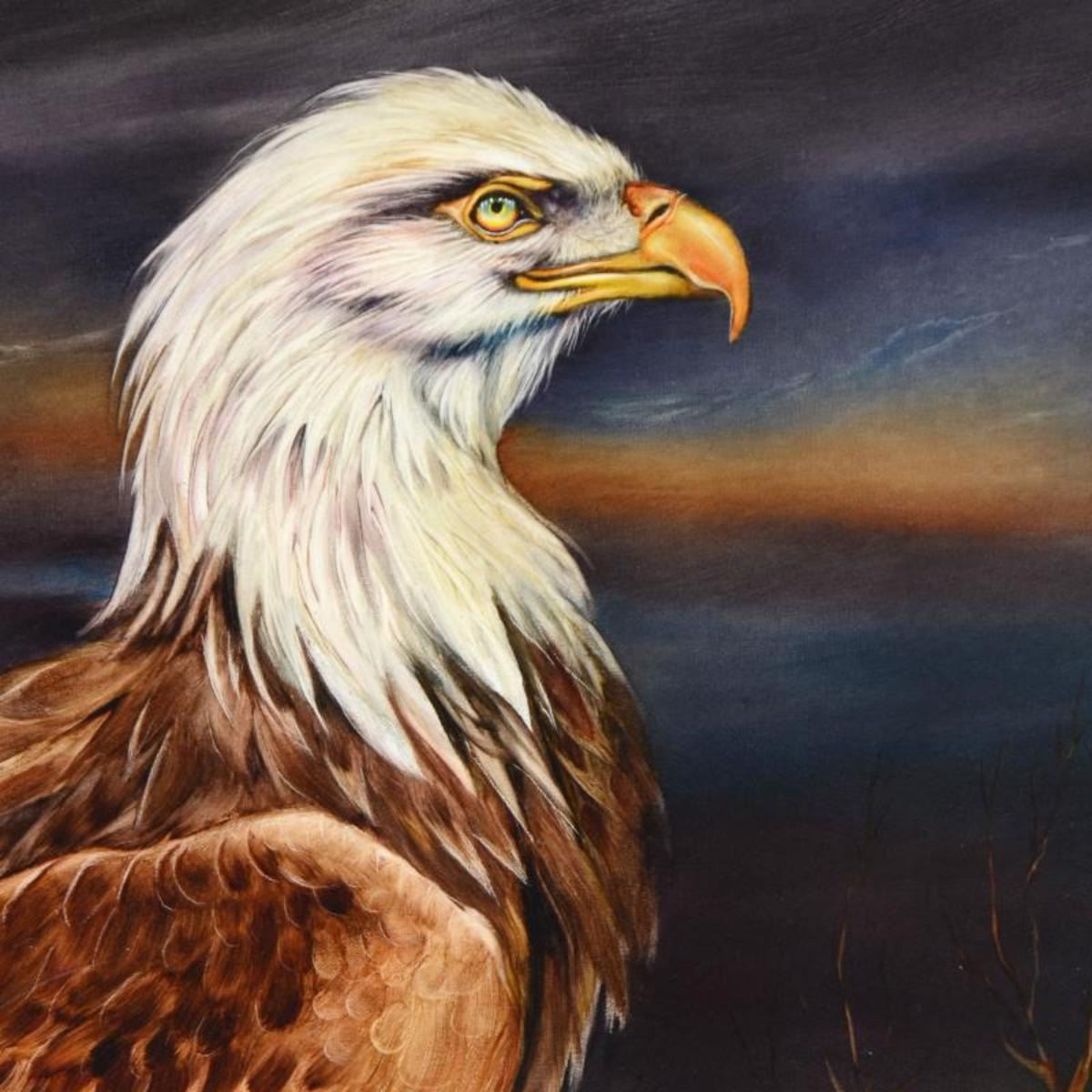 Martin Katon, "Light in the Night (North American Bald Eagle)" Original Oil Painting on Canvas, Hand