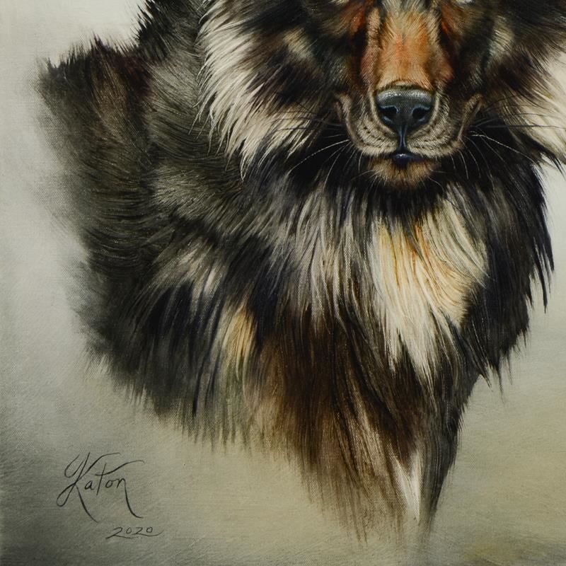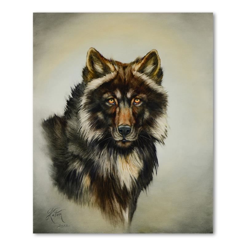 "Sirius Black Wolf" is an original oil painting on stretched canvas by Martin Katon, hand signed by the artist. Includes Letter of Authenticity. Measures approx. 24" x 30" (image).