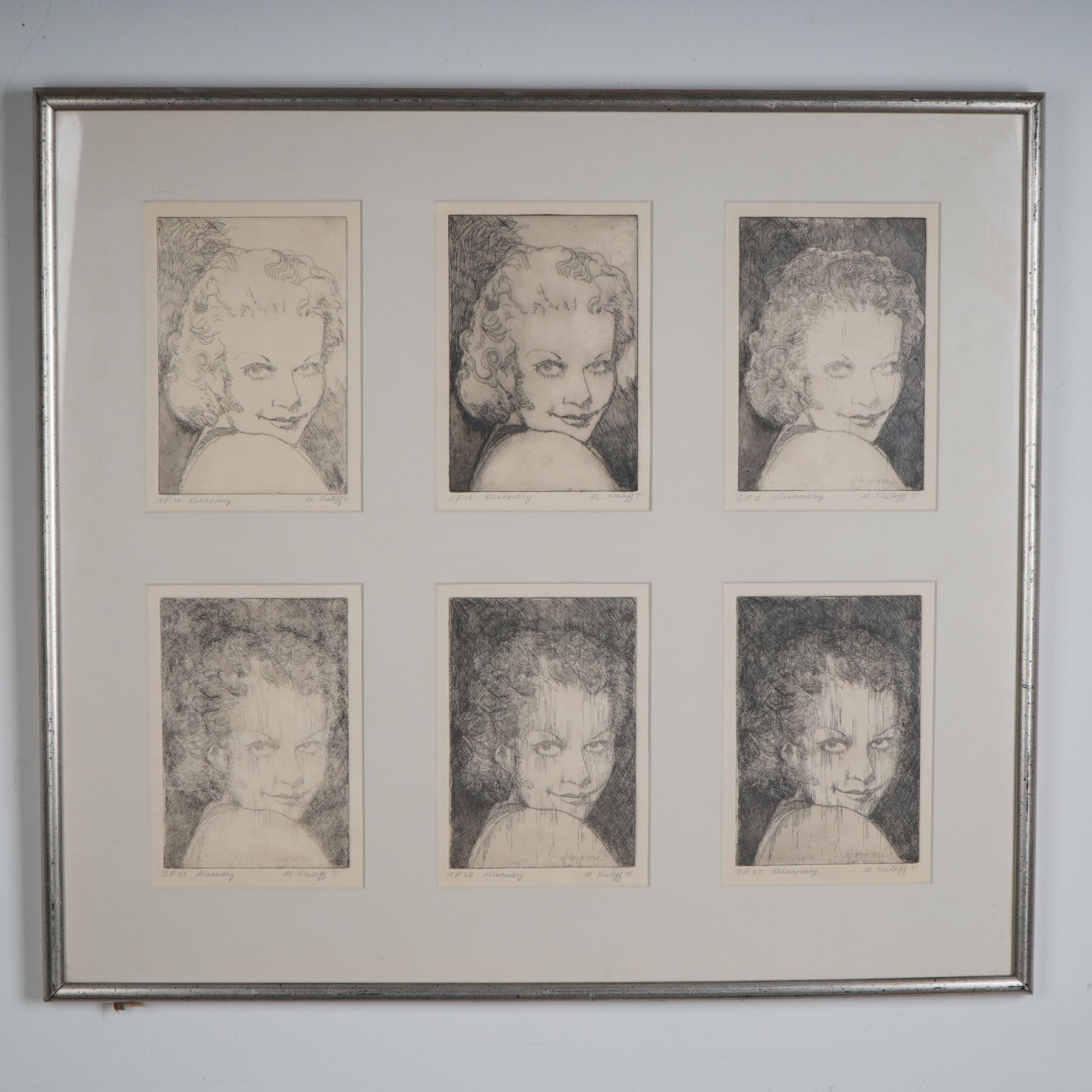 Martin Kreloff, Suite of Six Artist's Proof Etchings of Jean Harlow, Signed