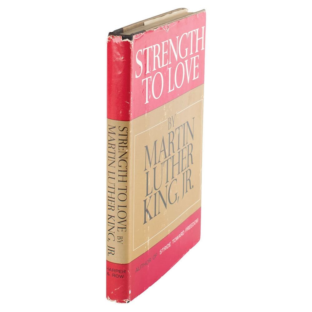 Published in 1963, Strength to Love is a collection of Martin Luther King, Jr.'s sermons on the topic of racial segregation in the United States and religious values. Dr. King was awarded the Nobel Peace Prize in 1964 for being the 'first person in the Western world to have shown us that a struggle can be waged without violence.' A handsomely signed compilation of King's addresses, with a great inscription evoking his Christian ideals as a Baptist minister.