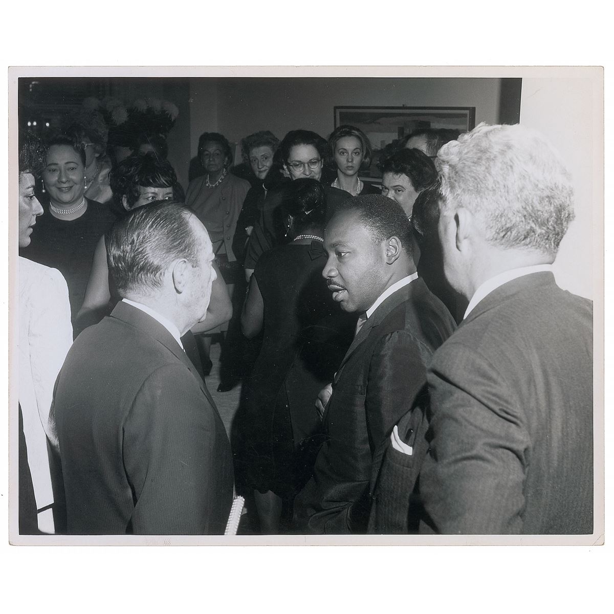Five first-generation candid glossy photos, 8 x 10 and 10 x 8, primarily showing King conversing with others, including several close-ups. In overall fine condition, with mild scattered creases and surface spotting. From the collection of Warren Arthur ‘Chip’ Logan.