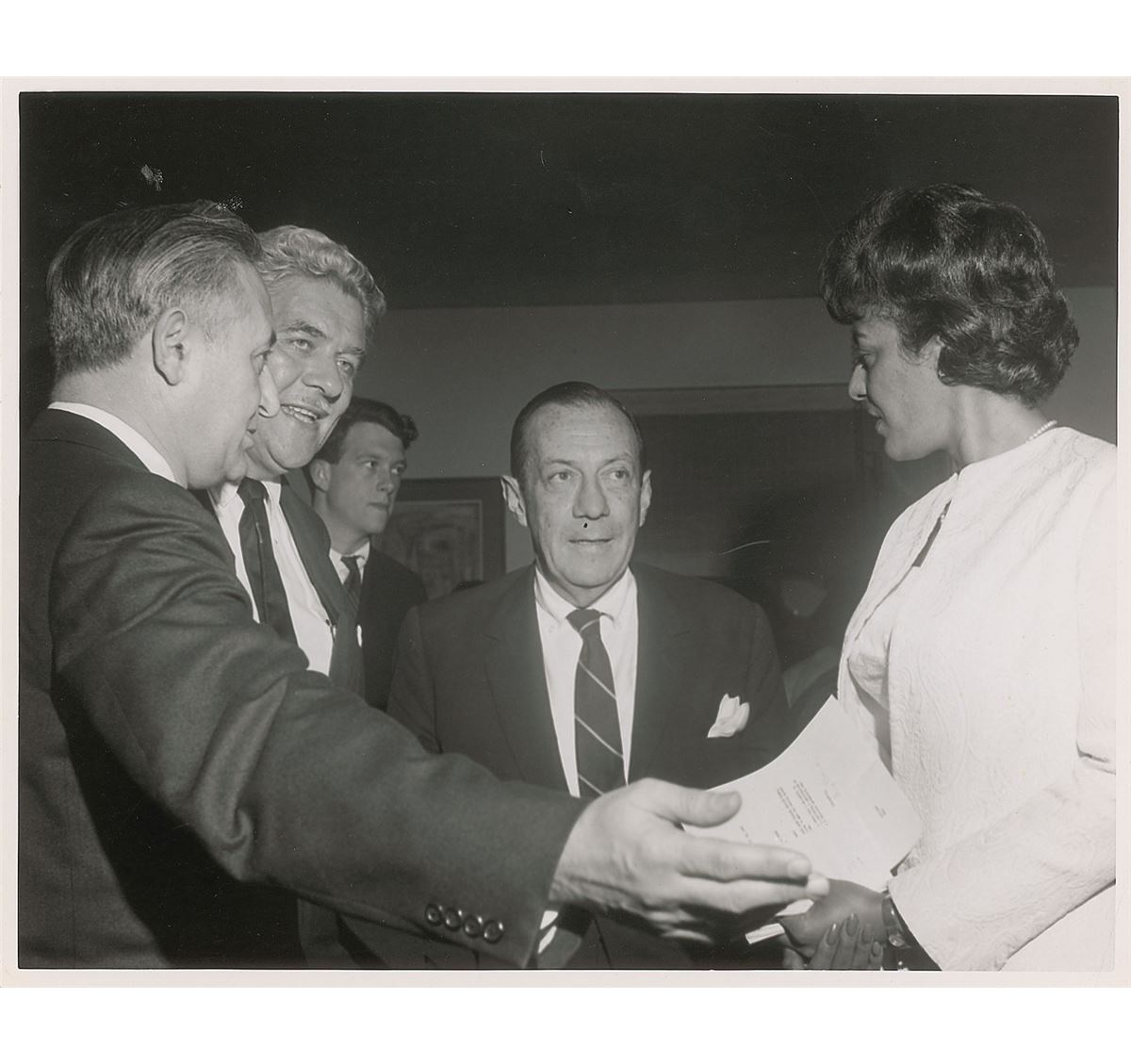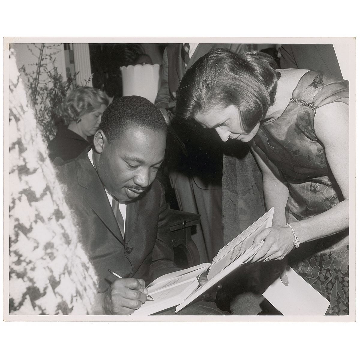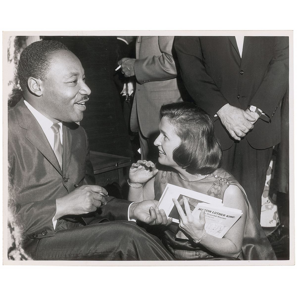 Five first-generation candid glossy photos, 8 x 10 and 10 x 8, with three depicting King, including two showing him happily signing books for an excited admirer. In overall fine condition, with scattered creases and a small edge tear to one of the King photos. From the collection of Warren Arthur ‘Chip’ Logan.