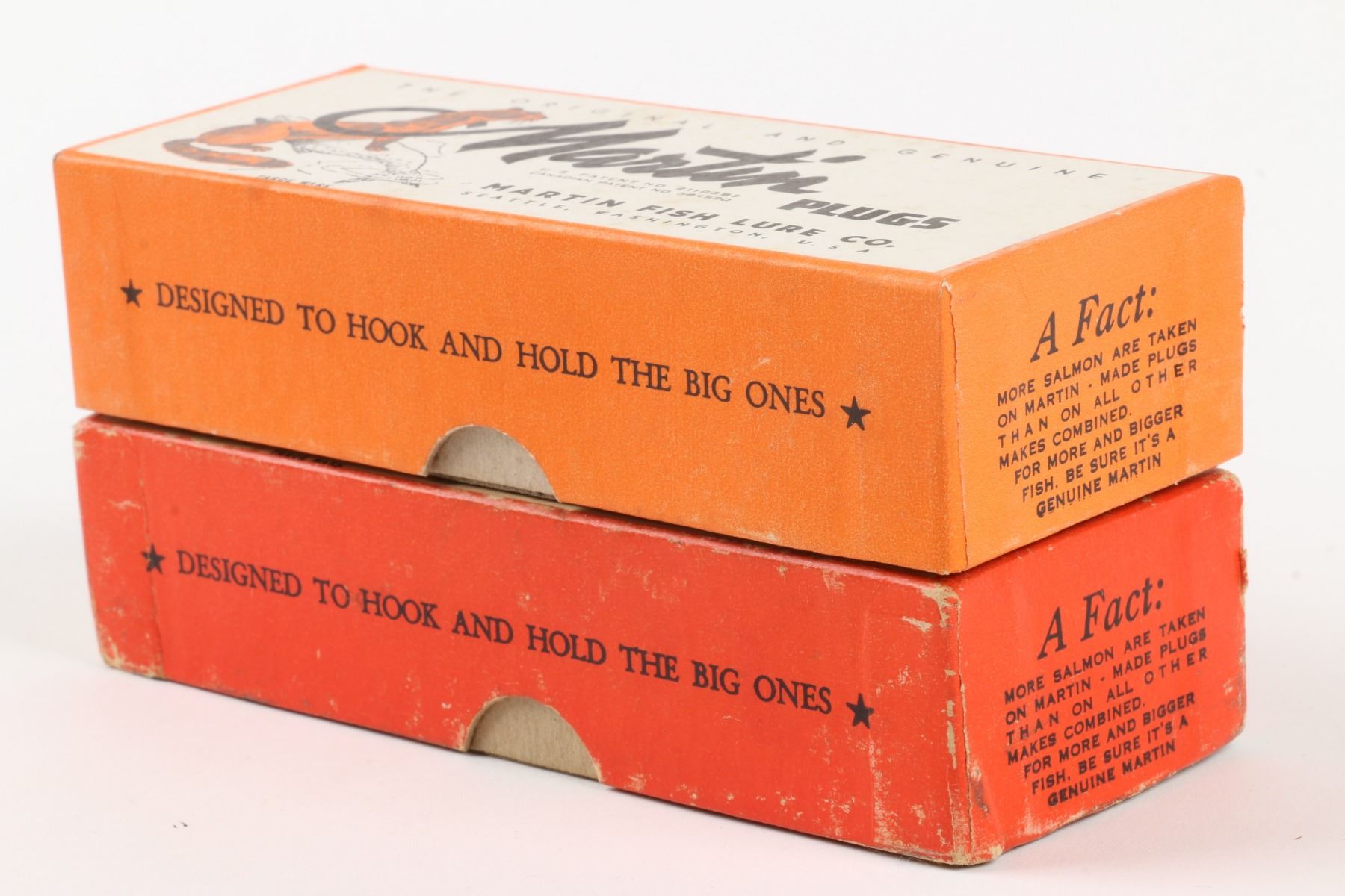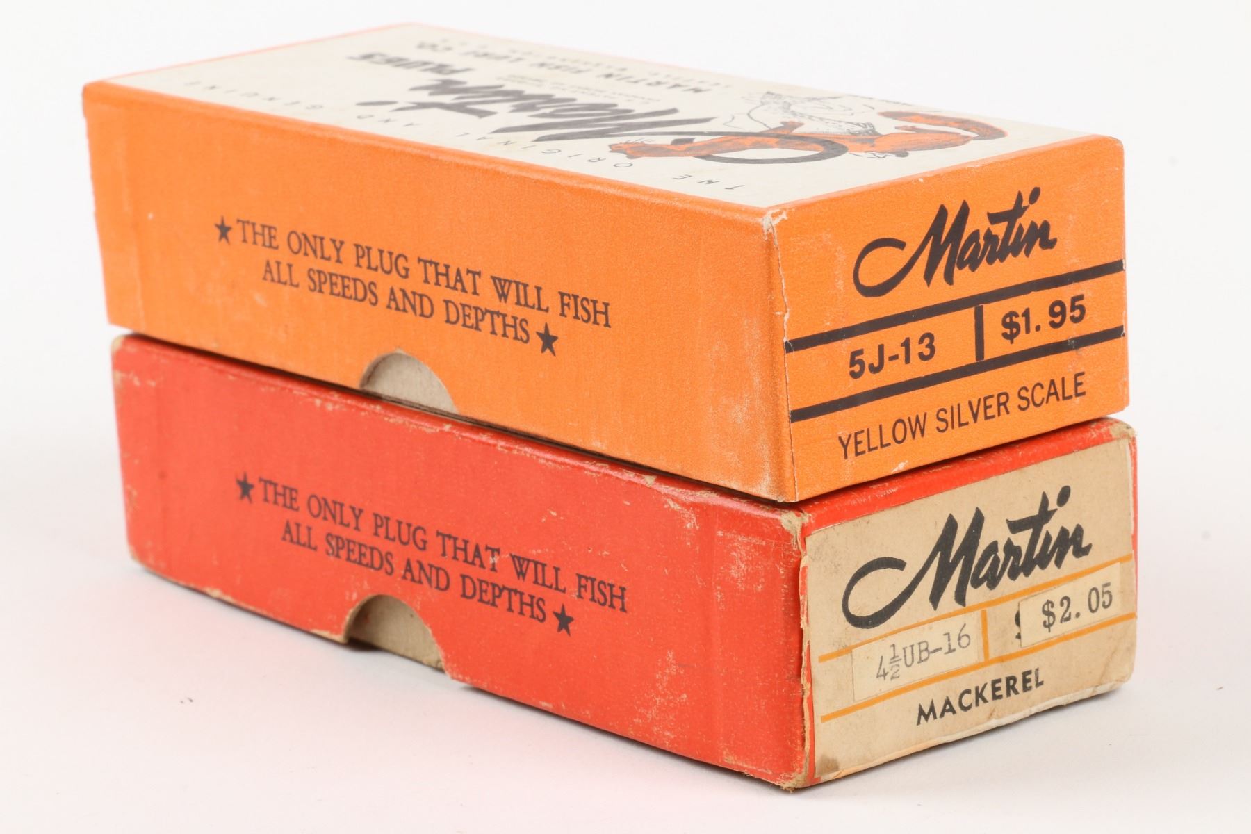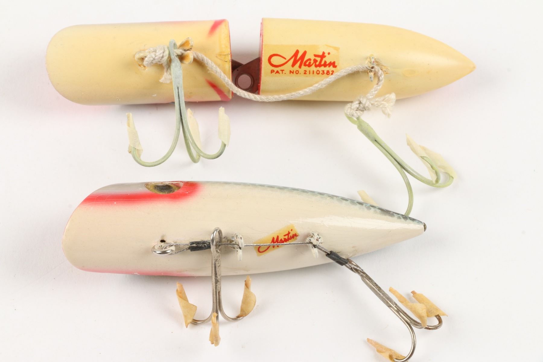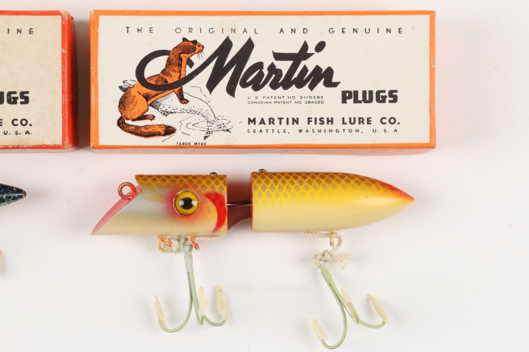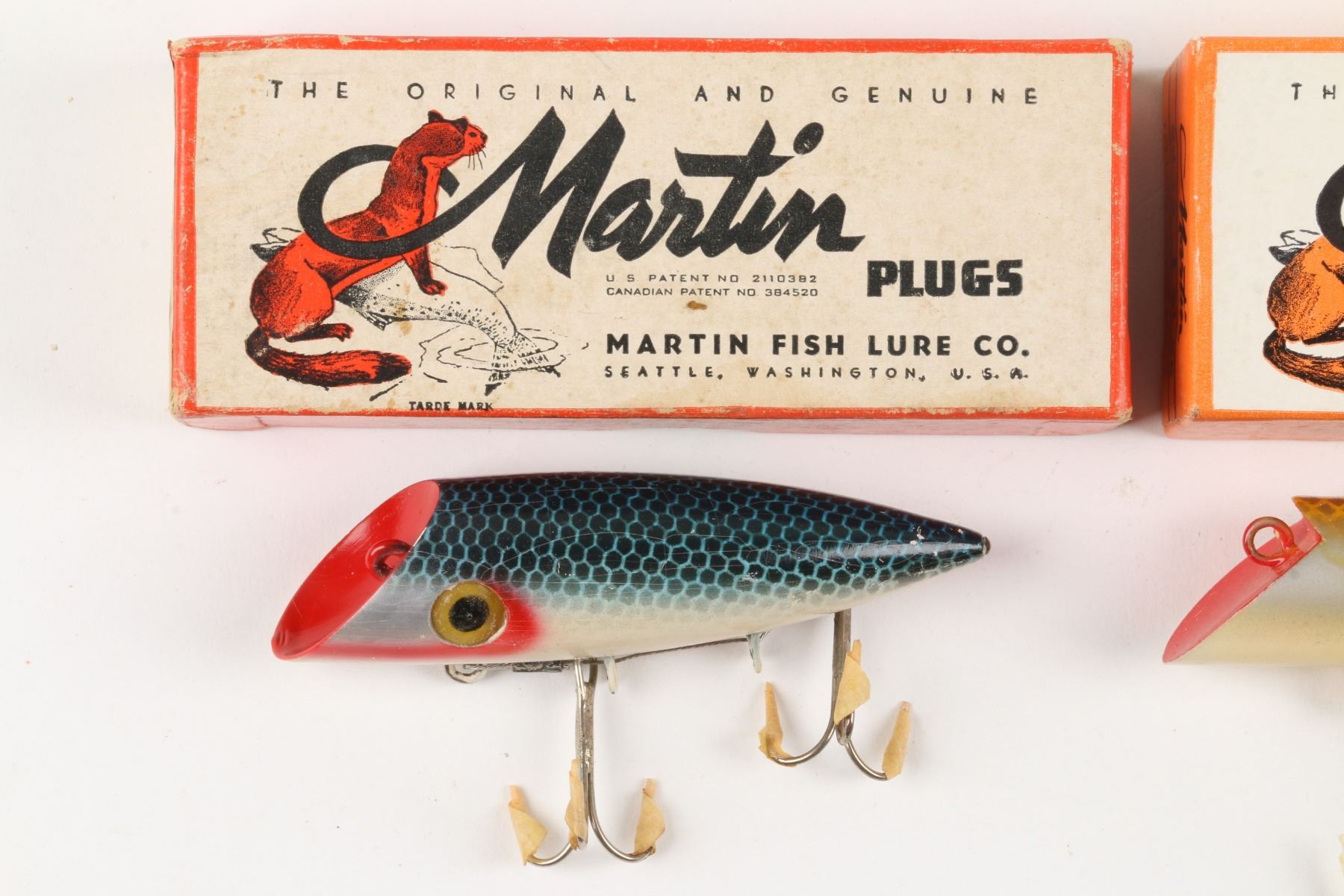 Martin Fish Lure Co., United States. Boxed. Material: Wood. Quantity: 2. Grade: VG. 5.5" boxes. Est. $100-125.