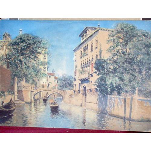 This is a process print of the period which is hand colored,.It is signed lower right in the print--RICO. There are some surface scratches and staining but certainly restorable if desired. To be correct, there is some hand coloring in this otherwise color process print.