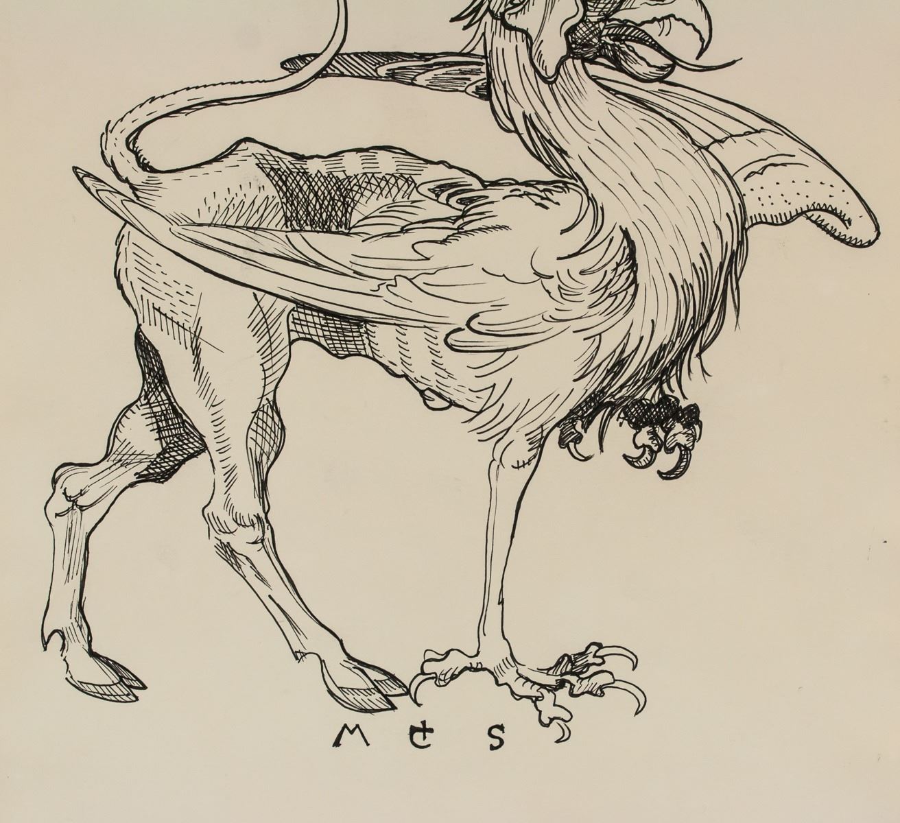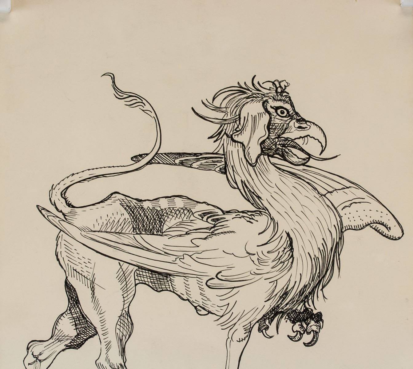 Ink on paper. Featuring a chimera. Signed MS on the lower edge. Attributed to Martin Schonguaer (1448-1491, German). 30.5 x 23 cm (11.75 x 9 inches). PROVENANCE: Southern Ontario estate