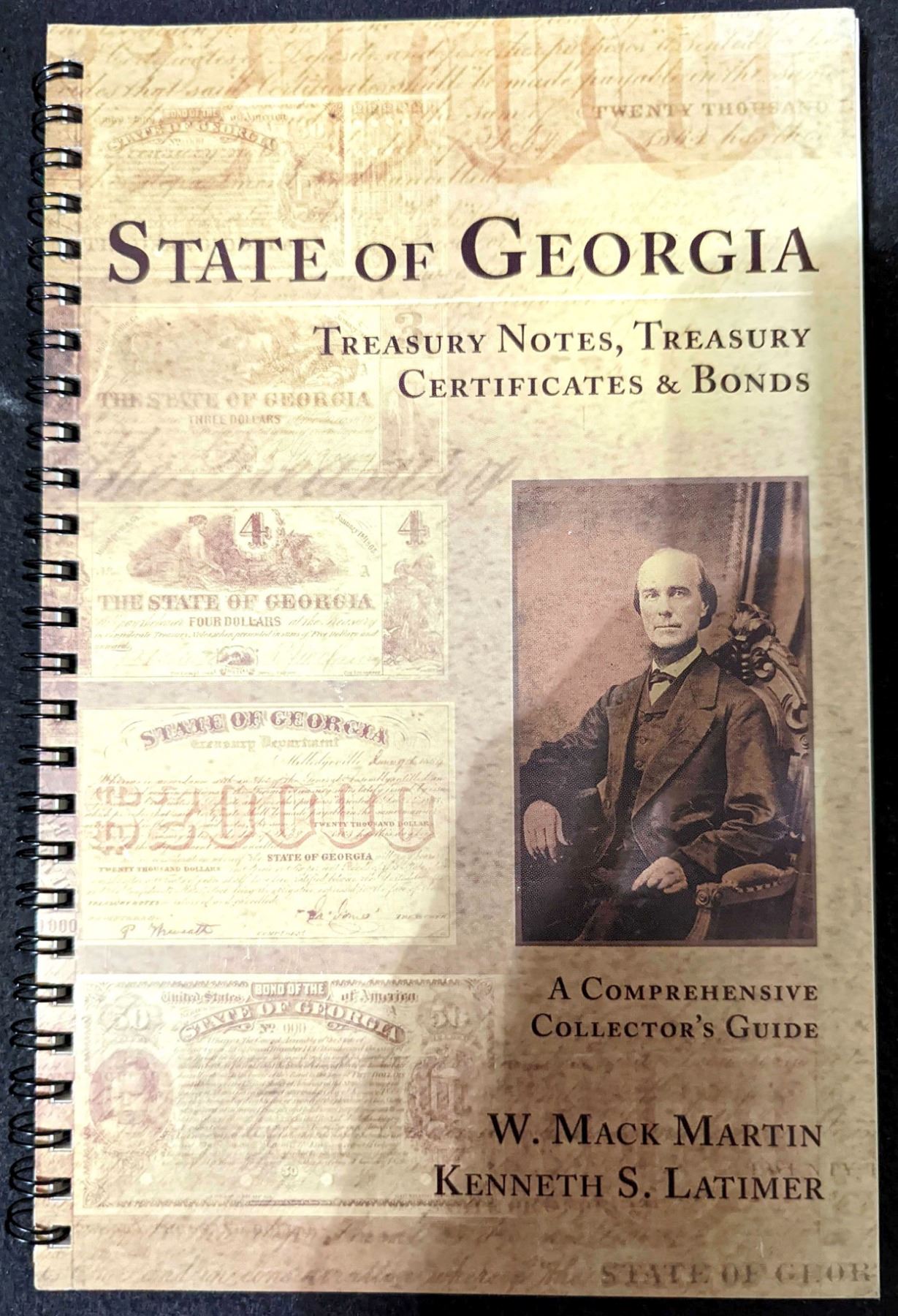 Martin, W. Mack & Kenneth S. Latimer. STATE OF GEORGIA TREASURY NOTES, TREASURY CERTIFICATES & BONDS. W. Mack Martin & Kenneth S. Latimer. 2005. 12mo. 95 pages. Original pictorial card covers. Wire spiral binding. color illustrated throughout. Signed by the authors. This book is a descriptive listing and rarity guide to the treasury notes, treasury certificates, and bonds used in the state of Georgia. It covers the different issuing entities that issued the currency with physical information including rarity for each note. Lot weight: 0 lbs 11oz. Subject(s): United States Paper Money - Georgia.