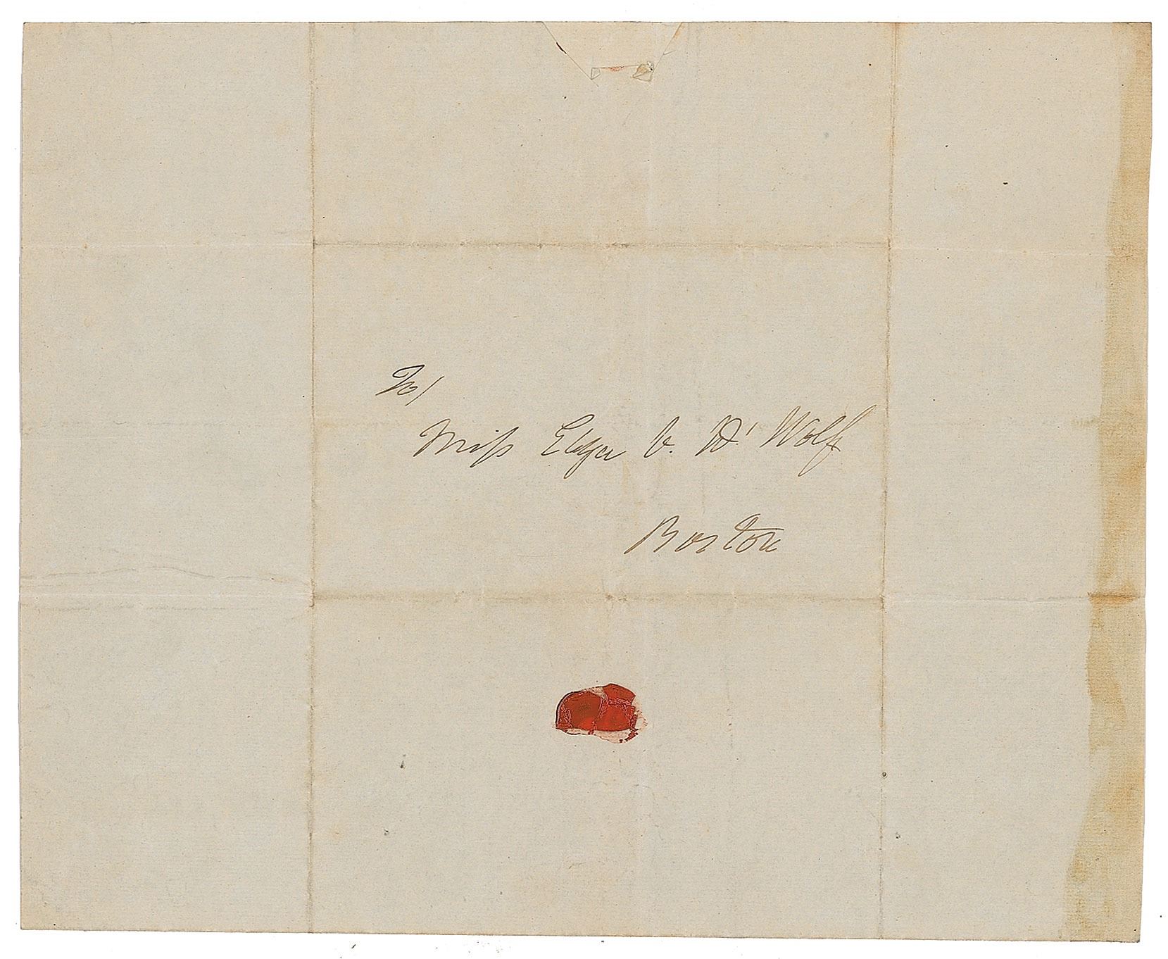 ALS as president, signed “M. Van Buren,” one page, 7.75 x 9.75, December 5, 1840. Letter to Miss Eliza V. D'Wolf, in part: "I comply with your request to be furnished with my autograph with much pleasure, and am, with best wishes for your health & happiness." Addressed on the integral leaf in Van Buren's hand. In very good to fine condition, with multiple intersecting folds, and seal-related paper loss and edge staining to the integral address leaf.