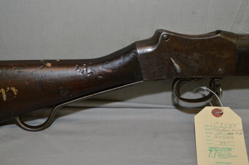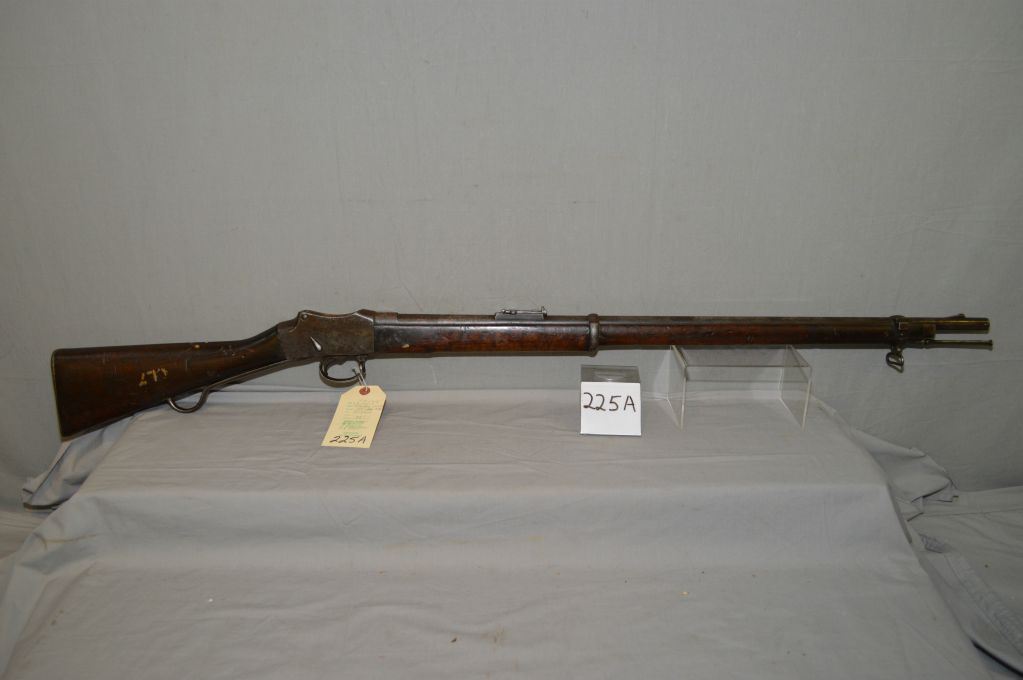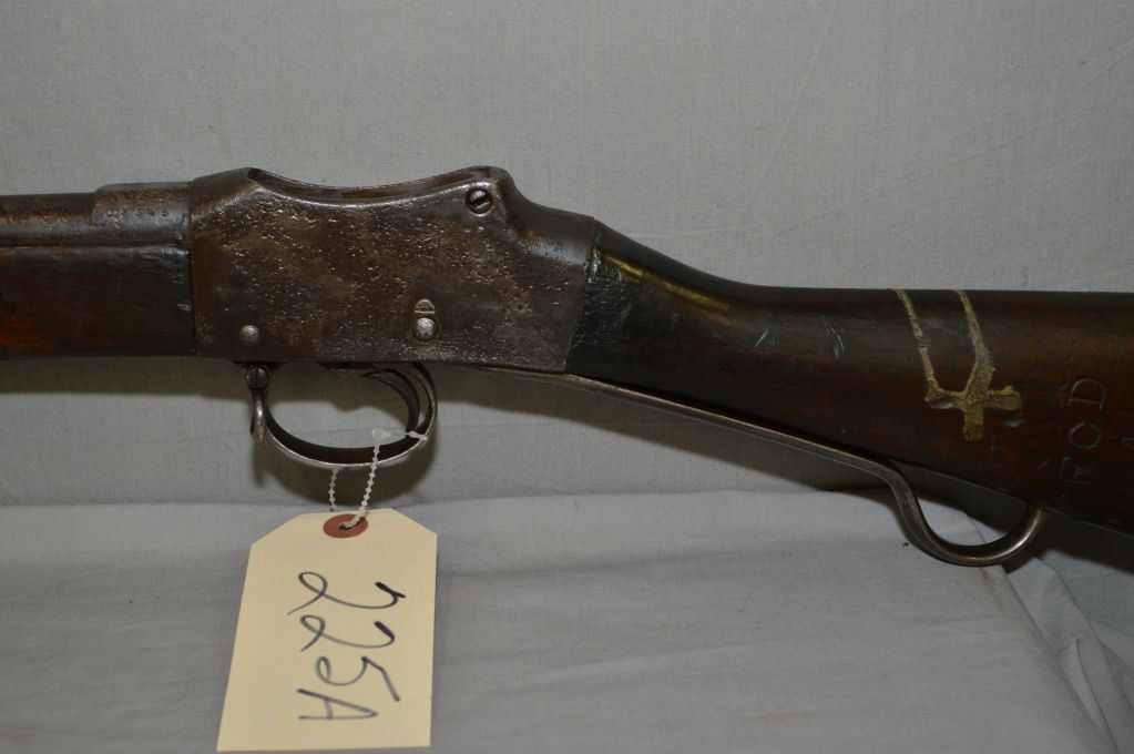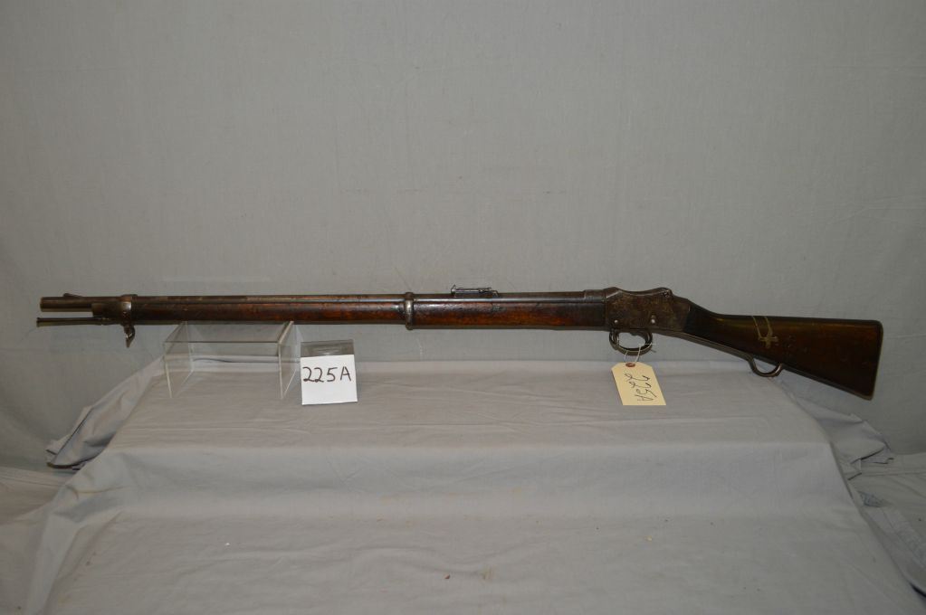 Martini Enfield Model 1887 No.1V Mark 1 .577/450 cal Two Band Full Wood Military Single Shot Rifle w/ 33" bbl [ faded blue finish turning brown with some pitting, also pitting on receiver, barrel sights, long lever, sling swivels, cleaning rod, various marks on the wood including FCD over the number 4 on left side, other various markings including CL 7 painted in white ] Ser # C3545 Antique No PAL Req
