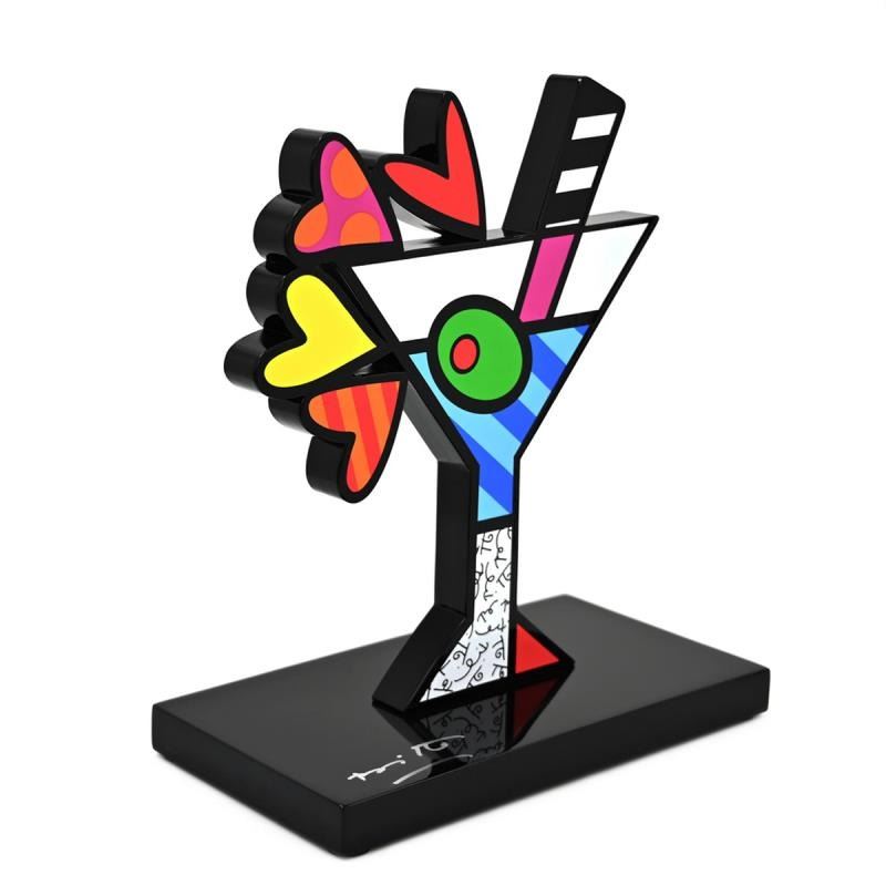 "Martini" is a limited edition resin sculpture by Romero Britto. Hand signed by the artist, this piece is numbered and authenticated with the official Britto hologram seal on its base. Measures approximately 9.5" x 8.5" x 4.5".