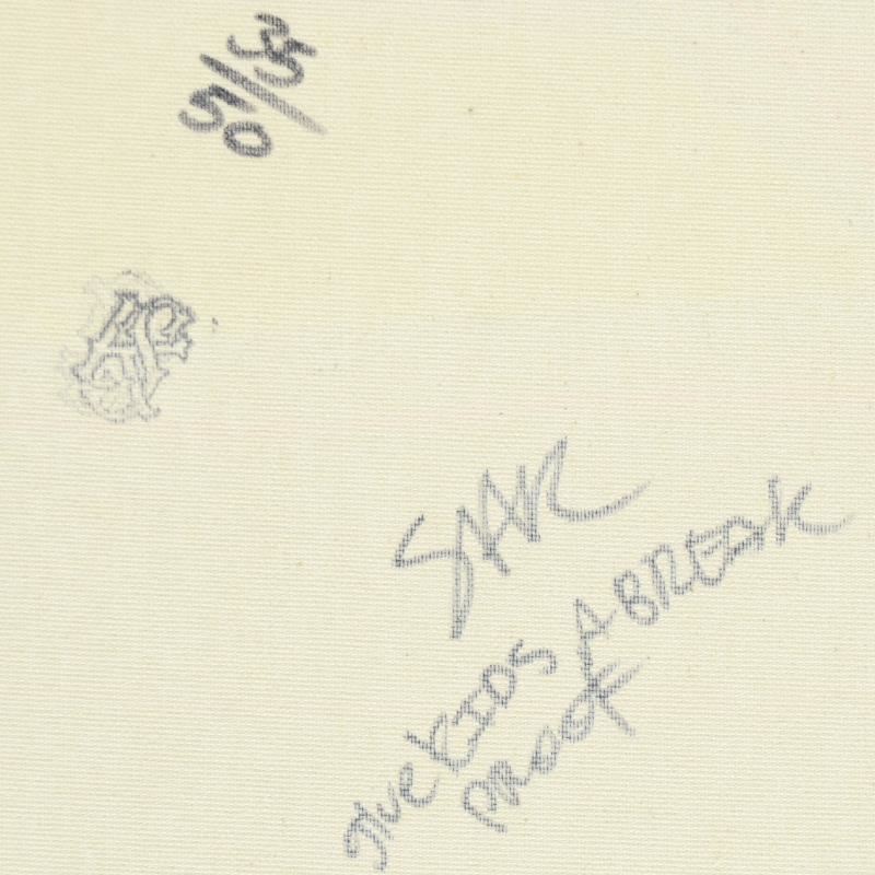 "Martini" is a hand embellished limited edition hand pulled silkscreen on canvas by Andy Warhol protege Steve Kaufman (1960-2010). This piece is numbered 35/50 and hand signed inverso. Includes letter of authenticity. As is common with Kaufman's works, this piece may have perceived minor flaws, but is in overall good condition. Measures approx. 24" x 24" (image).