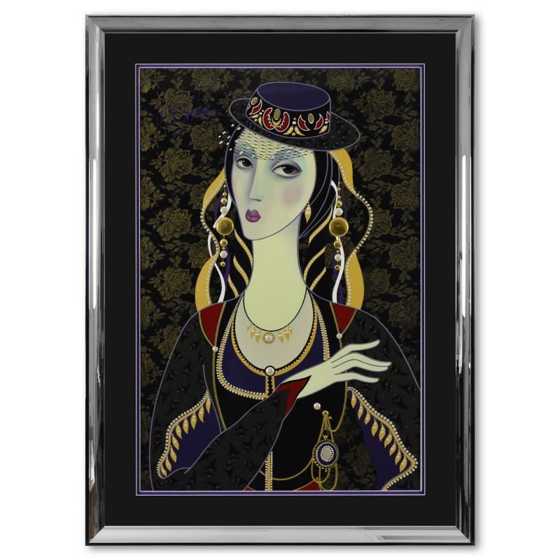 "Royal Pose (Purple)" is a limited edition mixed media silkscreen on paper by Martiros Manoukian, PP numbered 2/3 and hand signed by the artist. This piece comes custom framed. Includes Letter of Authenticity. Measures approx. 32.5" x 44.5" (frame), 23.5" x 35.5" (image). There are minor imperfections on the frame that is only visible upon close inspection.