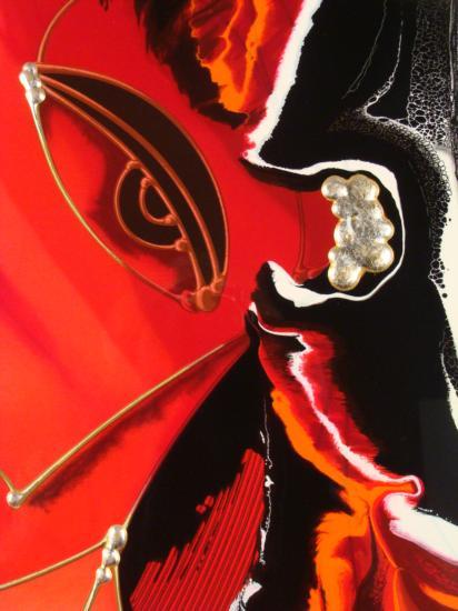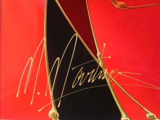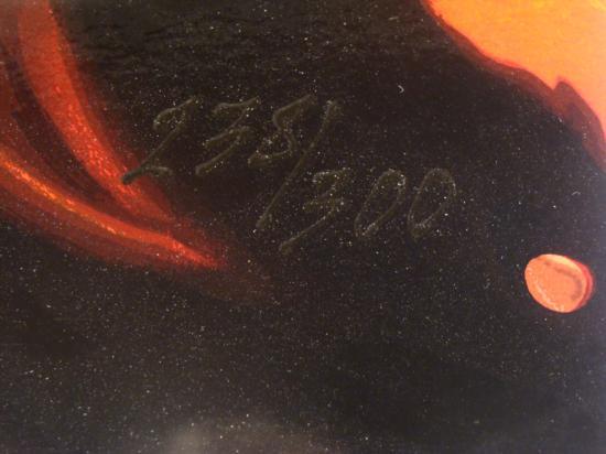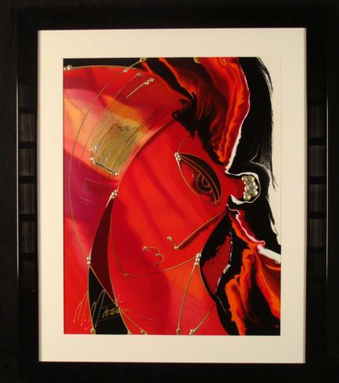 This is a limited edition mixed media art print by Martiros Manoukian. The image takes the female portrait and makes it abstract, while retaining and even enhancing her fashion and flair. The silver/gold tone hightlights are done with thick paint, adding a sensuous element of texture to the vibrant reds. Artist: Martiros Manoukian Title: Unknown Medium: Mixed media print on paper Signed: In silver paint, lower left Edition: Numbered 238/300 Image size: 22" x 28" Frame size: 30" x 37 1/2" Framing: Custom framed in white matte, in wood frame with black laminate Condition: Excellent Certificate of Authenticity: Included This Martiros signed print pays homage to traditonal Cubism, while bringing a cutting edge style. Biography: Martiros Manoukian (1947-_ ) was born in Armenia, and he knew early on that he was born an artist. Believing his artistic abilities were a gift from God, he pursued artistic studies, and had his first exhibition in 1972 in Yerevan. He continued to work and show his art around Europe up until 1987 when he emigrated to the United States. There he discovered a new found inspiration. As always, Manoukian's forms and colors are a flow of mood and movement. He has become recognized as one of the most successful contemporary artists in the U.S., Europe, and Japan. *
