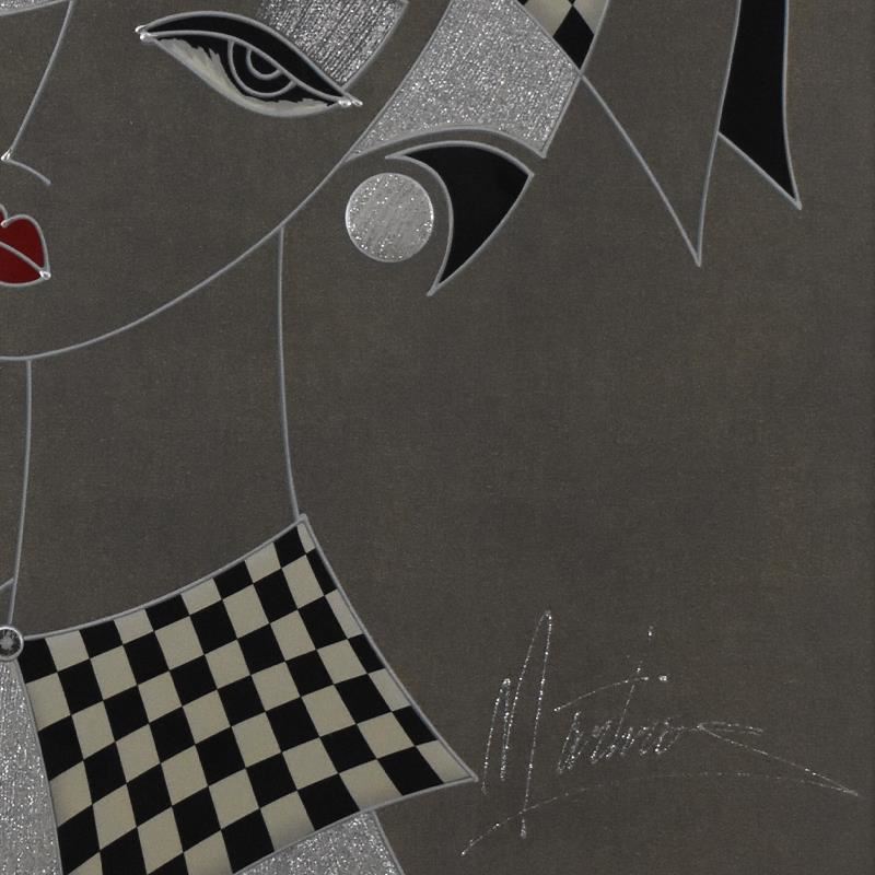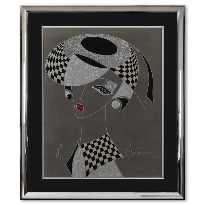 "Wistful Elegance" is a limited edition mixed media silkscreen on paper by Martiros Manoukian, PP numbered 1/15 and hand signed by the artist. This piece comes custom framed with a mirror-like finish. Includes Letter of Authenticity. Measures approx. 32.5" x 38.5" (frame), 23.5" x 29.5" (image). There are minor imperfections on the frame that is only visible upon close inspection.